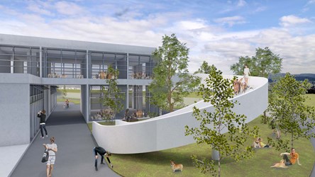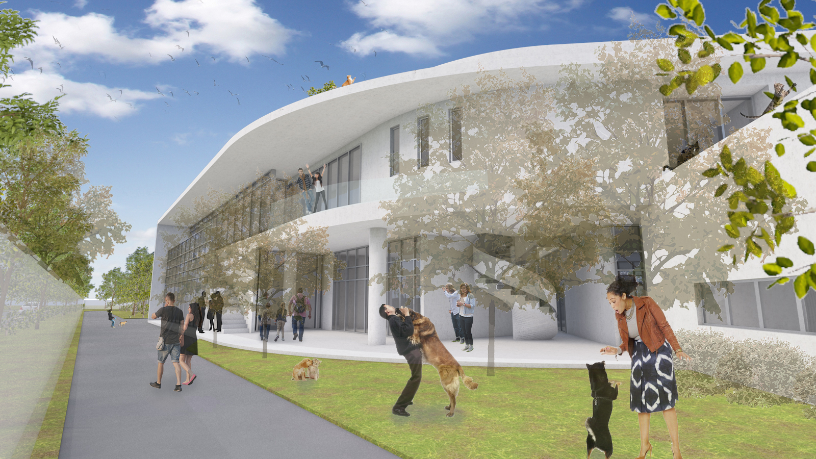建設局說明,后里動物之家園區建築外觀設計,大量採用圓弧曲線,柔化動物收容所昔日冰冷形象,象徵對民眾敞開歡迎的姿態,翻轉過去傳統動物收容所髒亂吵雜的刻板印象;同時藉由提供各成犬舍附設獨立空間、犬隻行為訓練場及專屬幼犬戶外運動的戲水池,提供犬隻常態及豐富的社會化機會,並融入生態工法理念,興建節能綠建築、營造低汙染園區,打造結合動物認養、寓教於樂、休閒遊憩等多元化發展園區,宣導民眾「認養、不棄養」觀念。未來營運規劃上,將朝向系統化管理動物資料、建立志工制度、園區參訪解說為目標。