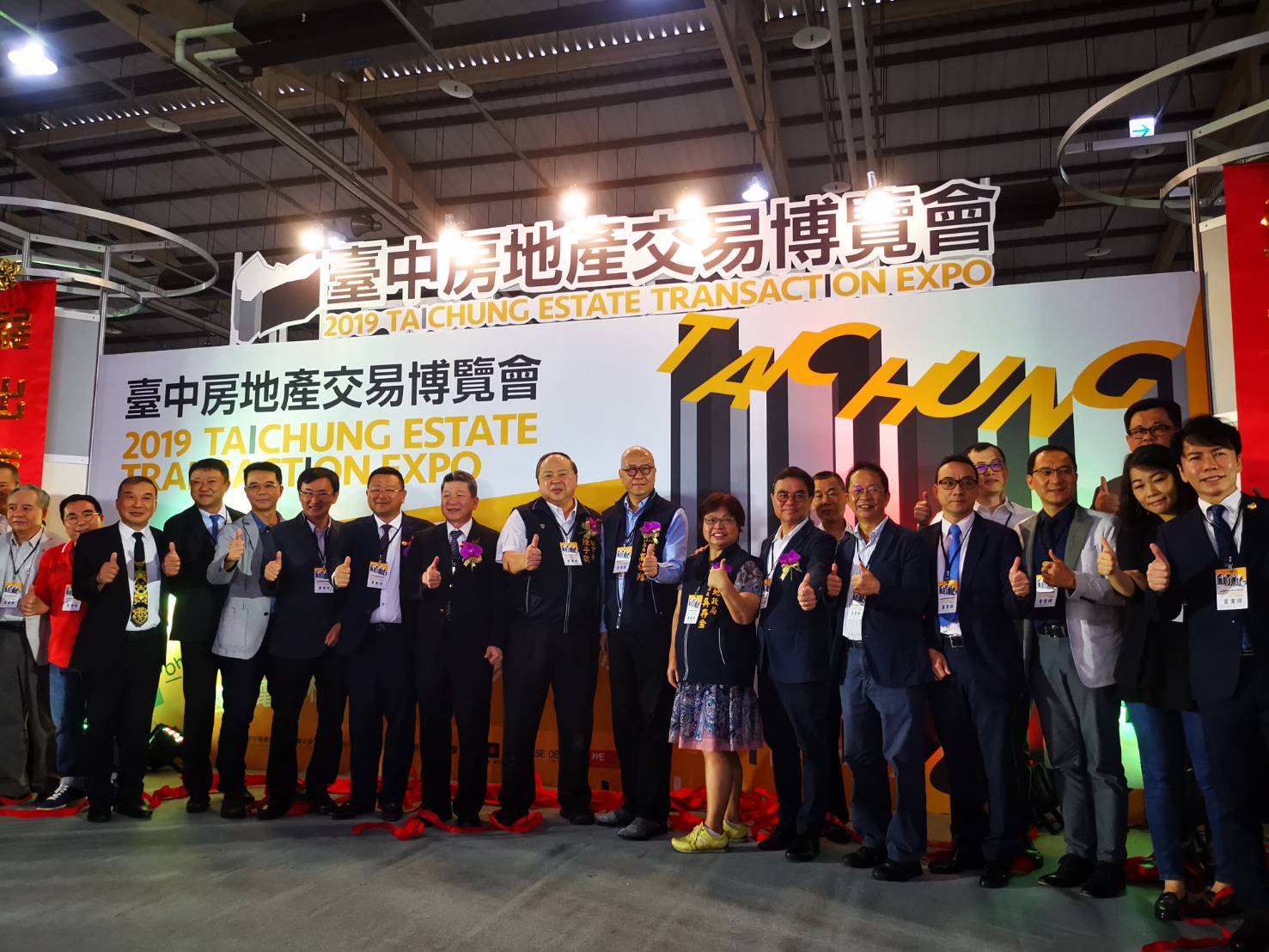 「台中房地產交易博覽會」今日舉行揭幕儀式,副市長陳子敬、都市發展局長黃文彬、經濟發展局長高禩翔、地政局長吳存金、兩大公會理事長邱崇喆、王至亮與業界代表共同至場參與剪綵。