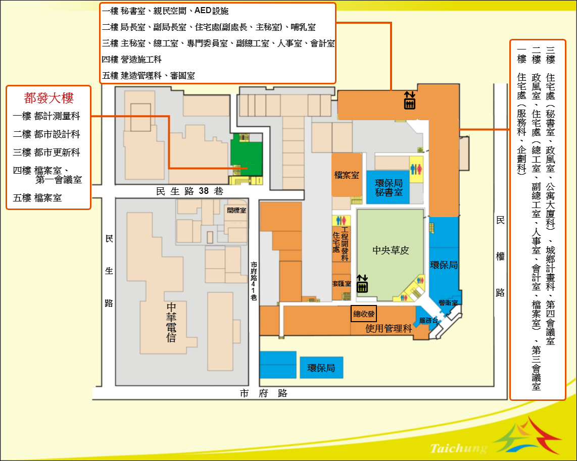 都發局表示,由於該局這次於州廳內進行小搬遷,進駐新辦公空間後,辦公地址、電話均維持不變,民眾洽公可從民權路與平等街口的住宅發展工程處入口進出(西區民權路99-1號、花旗銀行民權分行正對面),州廳內也有清楚指標引導,或是可上該局官網(https://www.ud.taichung.gov.tw/1270676/post)查詢相關配置圖。