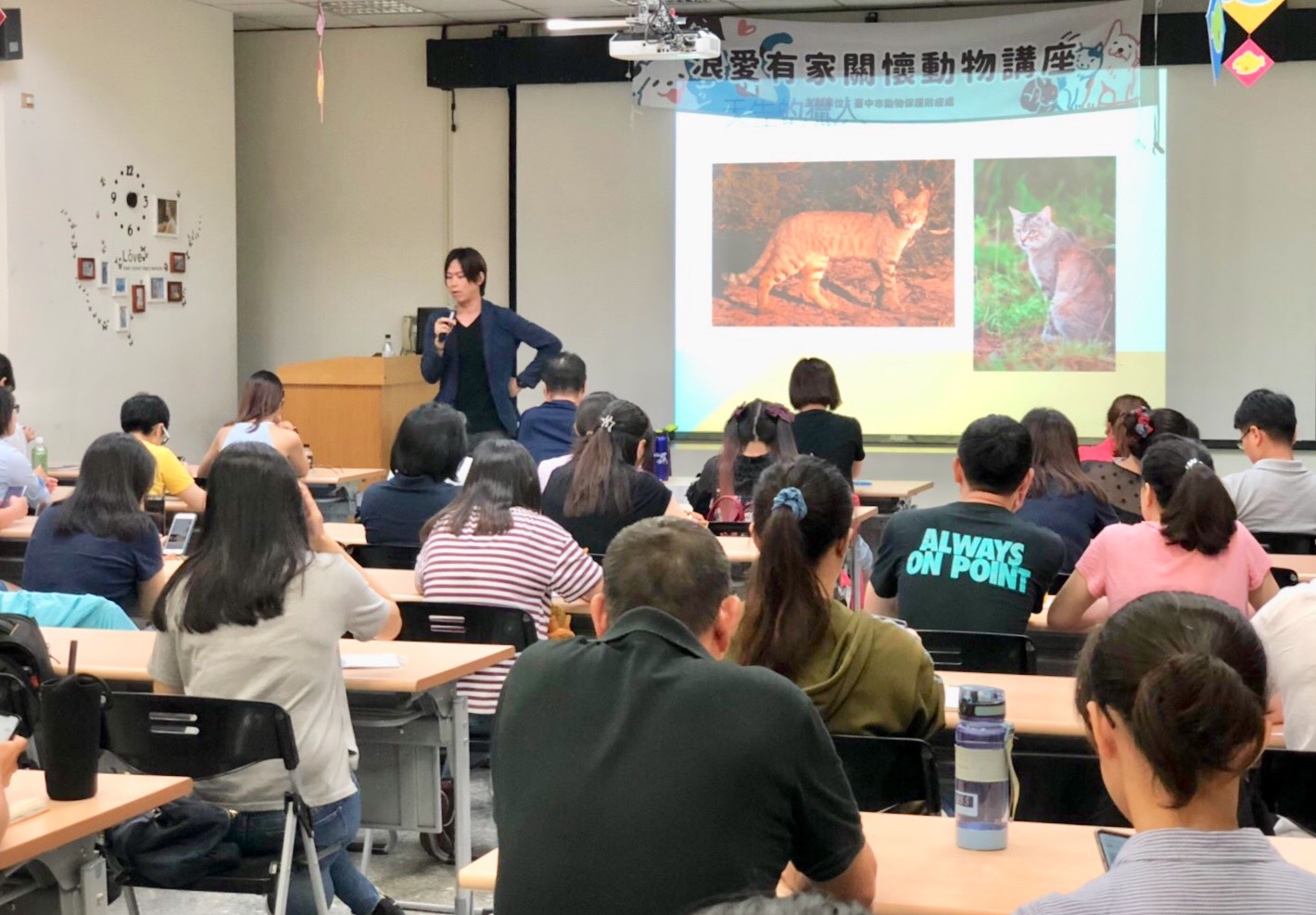 台中市動保處昨(27)日在台中市立圖書館西屯分館舉辦浪愛有家關懷動物講座,邀請獸醫師林子軒以「一起生活吧,貓小孩」為題,說明如何解決貓咪隨地大小便、半夜嚎叫或咬人等行為問題,3小時課程,逗趣又專業的講解引人入勝,吸引許多民眾到場聆聽。