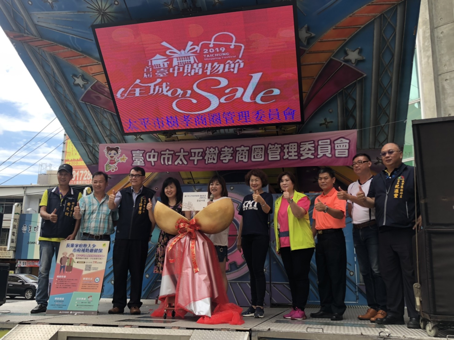 響應台中購物節,台中市政府經濟發展局輔導的太平樹孝商圈,特別推出可愛吉祥物「太平公主」識別門牌,今(28)日更於新平立體停車場舉辦商圈優惠折扣活動,民眾現場下載台中購物節APP送冰棒,打卡再送「買200現折50元」折價券。此外,購物節期間於太平樹孝商圈消費累積500元,即可登錄台中購物節APP參加抽獎,有千萬豪宅、百萬名車等多項好禮,讓民眾滿載而歸。