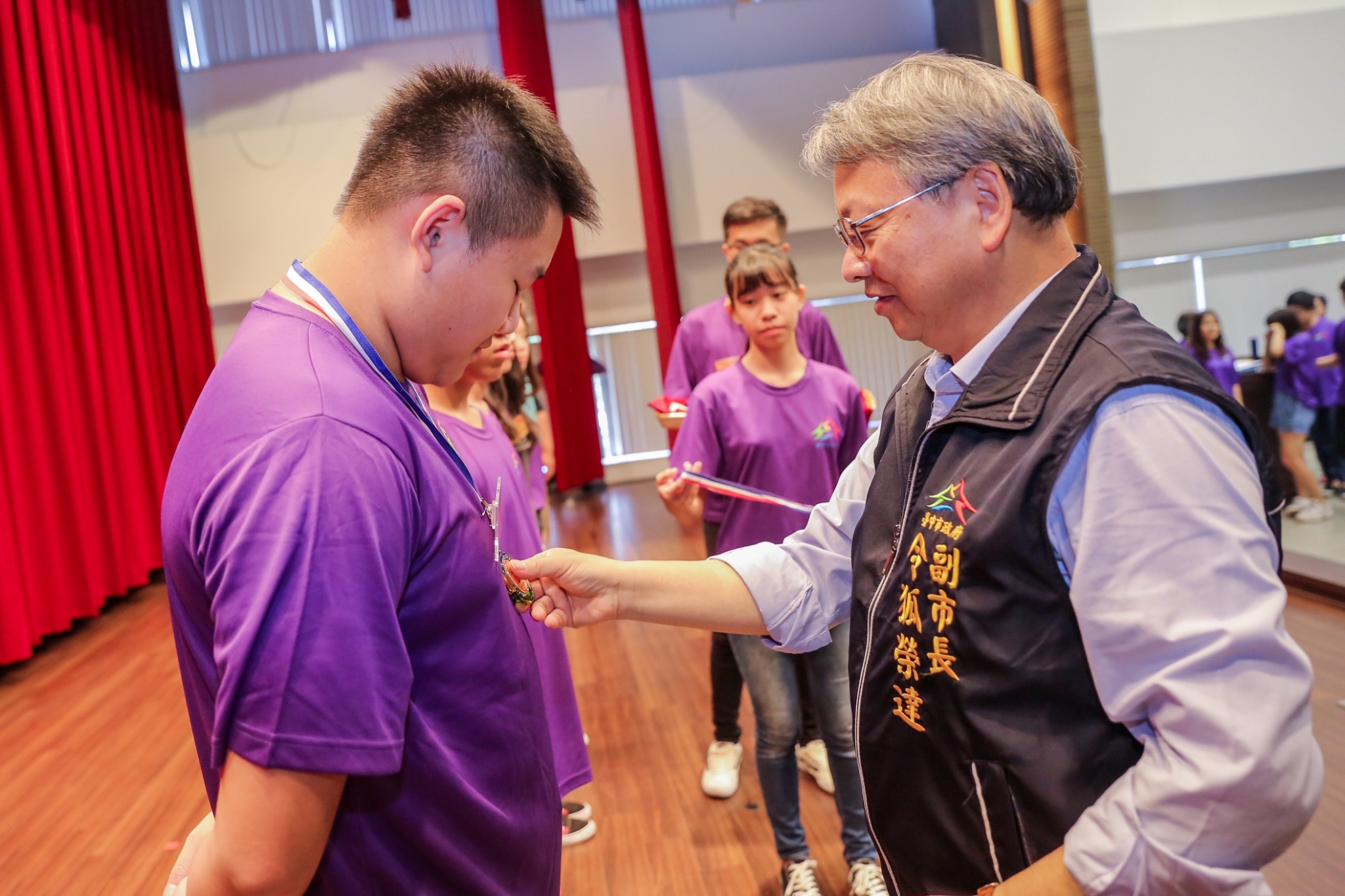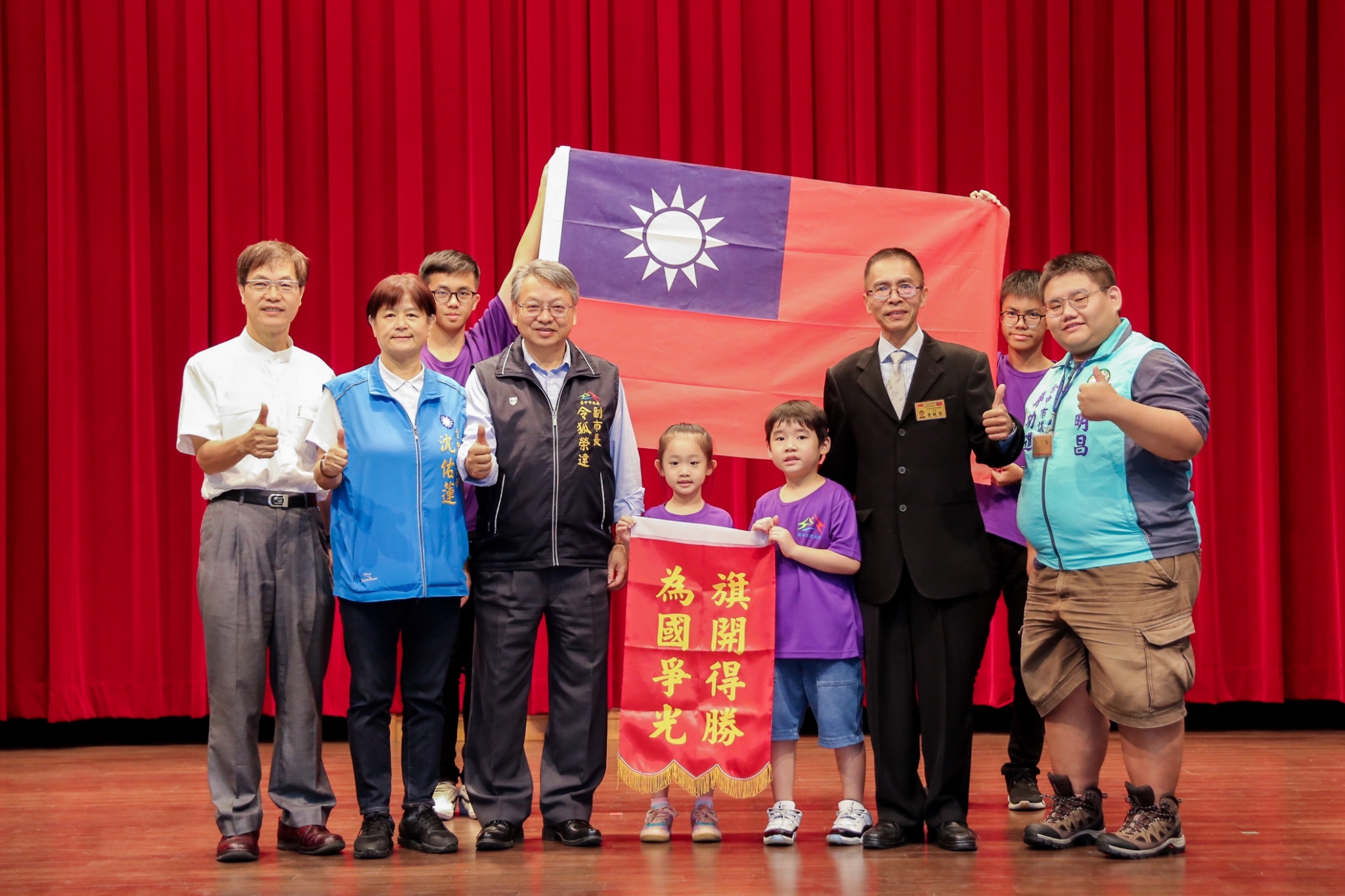 今日授旗儀式,由副市長令狐榮達出席,市議員沈佑蓮、羅廷瑋,以及教育局副局長劉火欽也一同參與,市議員鄭功進也派代表為學生加油打氣。