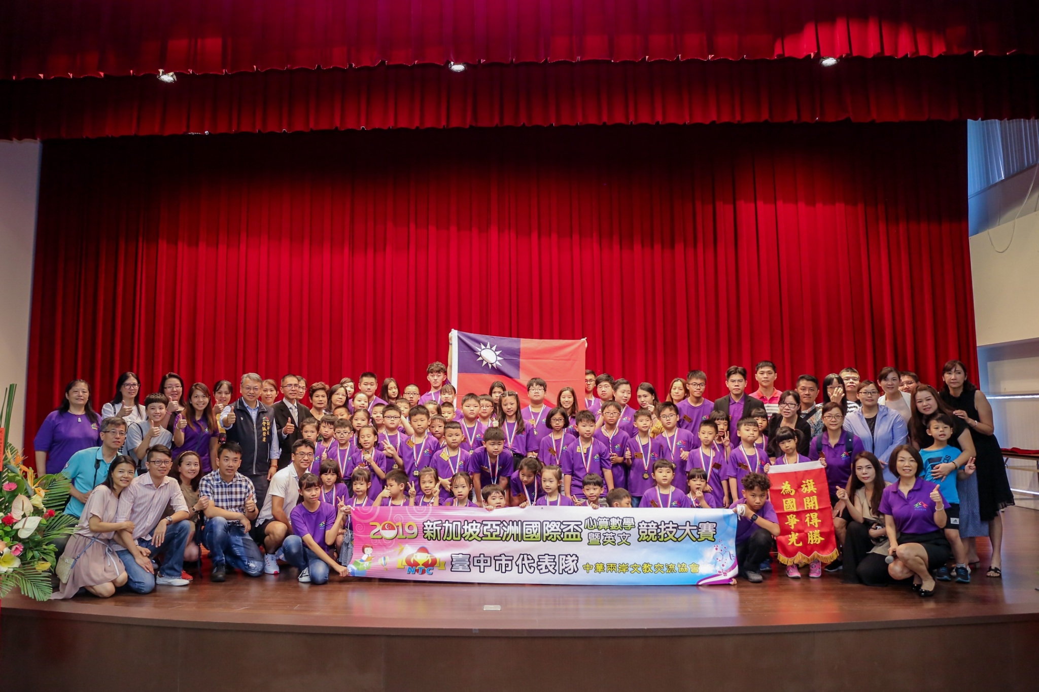 2019新加坡國際亞洲盃心算暨數學英文競技大會將於8月4日在新加坡登場,台中市副市長令狐榮達今(29)日於市政大樓為台中市代表隊授旗,由中華兩岸文教交流協會理事長葉純哲與學生代表接受錦旗。令狐副市長也頒發「為國爭光」獎牌,表揚學生勇於參賽的精神,期勉選手們旗開得勝,為台中市爭取榮耀、讓世界看見台灣。