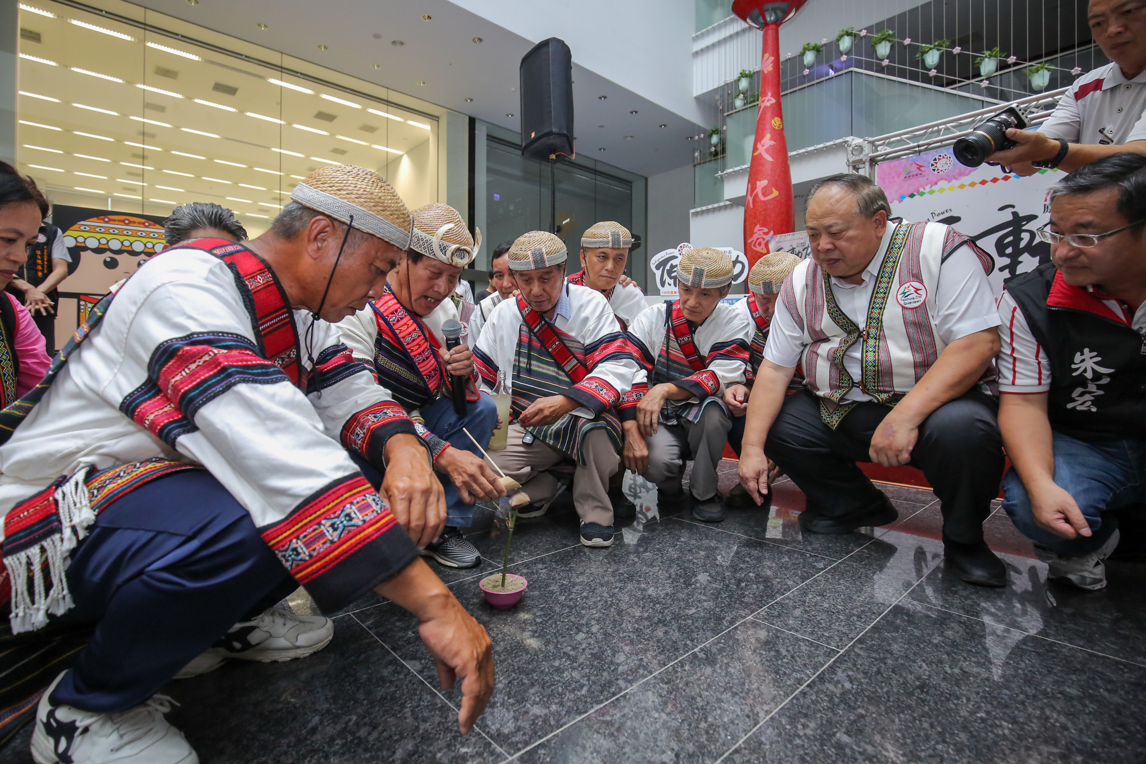 市府原民會今日在台灣大道市政大樓舉辦「108年台中市紀念原住民族日記者會」,由副市長陳子敬、市議員朱元宏、黃仁、原民會主委林益陸、運動局長李昱叡、建設局長陳大田、法制局長李善植、文化局長張大春等人一起宣告活動開跑。
