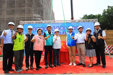 長春國民運動中心今(2)日舉行上樑典禮,預計今年底完工,成為台中第四座國民運動中心。市長盧秀燕到場感謝歷任市長「一棒接一棒」全力推動,還有多位民代爭取經費,讓工程預算達4億5千萬元,提升場館設備品質,未來將接續推動周邊綠川水環境改善,讓場館與周邊景點相輝映,成為南區運動休憩一大亮點。
