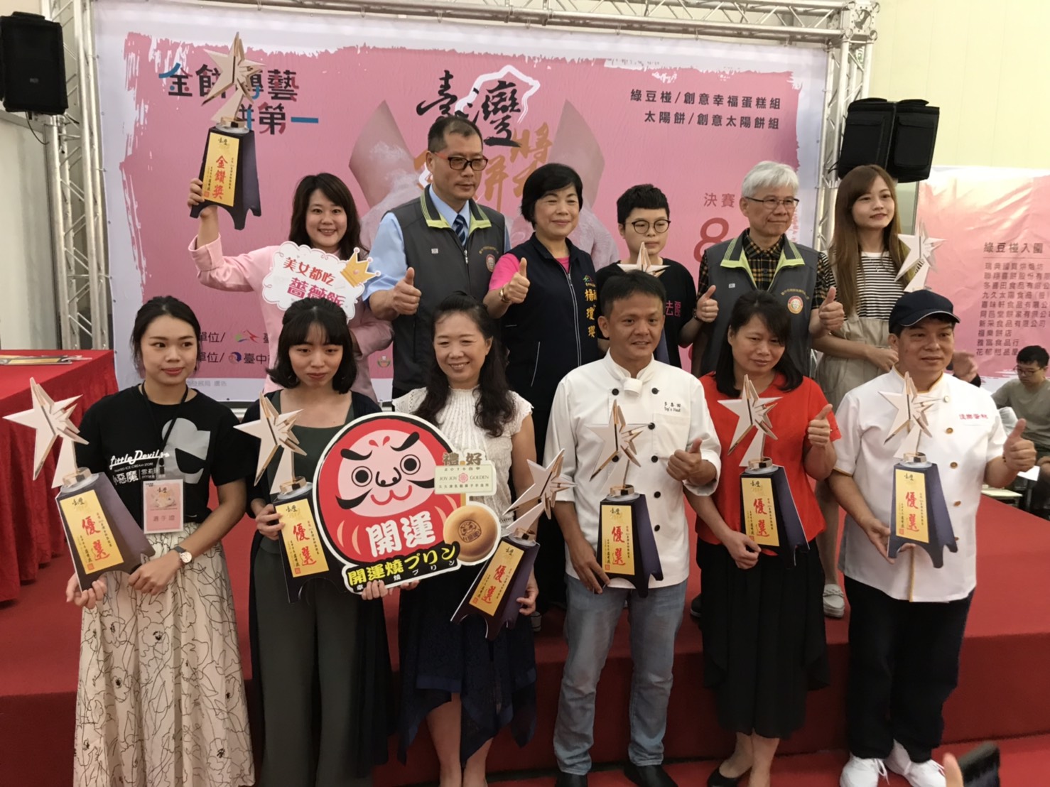 台中市政府舉辦第六屆台灣金餅競賽,今年初賽於723日舉辦,吸引共123件作品參與評選,昨日進行決賽後,今(3)日在台中世貿頒發各優勝獎項。此外,今年還特別舉辦創意太陽餅及創意蛋糕競賽,期望為糕餅產業帶來全新的發展,台中市副市長楊瓊瓔也到現場祝賀優勝者,鼓勵所有糕餅師傅持續努力,開創多元化糕餅。