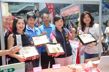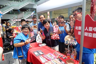 楊副市長指出,現場15家身心障礙福利機構團體及庇護工場中,已有10家加入台中購物節優惠商家,除能讓大家以實際行動支持身障朋友用滿滿愛心與用心製作的成果,又可將發票或店家QR Code登錄「臺中購物節APP」,抽千萬豪宅、百萬名車,一舉數得,千萬不要錯過!