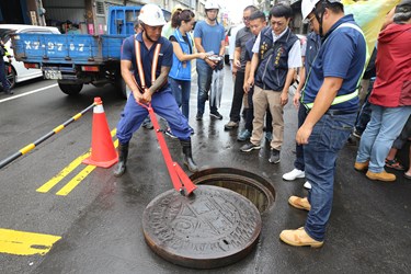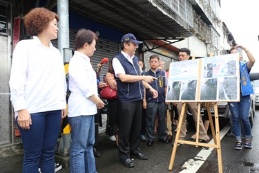盧市長表示,鵬儀路附近長期淹水,因此市府投入約1,000萬元預算進行鵬儀路雨水下水道工程,預計10月31日完工。這幾天因不斷有豪雨,今日前來勘查,肯定工程順利外,更在這次豪雨中開始發揮部分功能,附近沒有淹水,希望完工後能發揮更強大的功能。未來市府在進行相關工程時會再結合道路路面規劃,提升滲水功能,希望逐步改善易淹水地區的淹水情況。