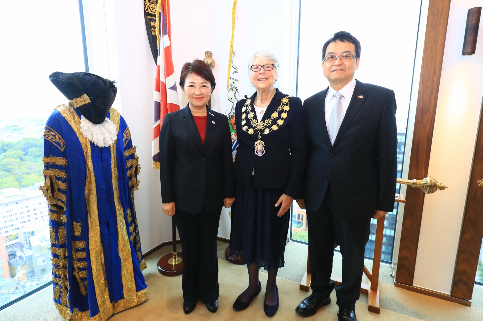 倫敦西敏市是全英國最重要的政治中心,包括國會大廈、白金漢宮都座落於此,台中市長盧秀燕台灣時間3日參訪倫敦,特別拜會西敏市市長Ruth Bush。由於兩人均為女性首長,會面時氣氛十分熱絡,西敏市市長Ruth Bush也向盧市長展示她參加傳統儀式所穿的禮服及權杖,盧市長則邀請西敏市市長Ruth Bush有機會參訪台中,全力推動城市外交。