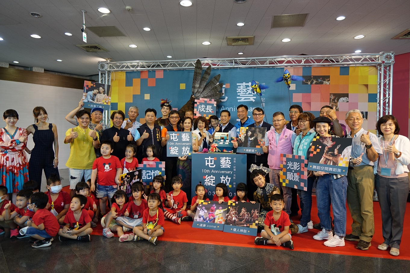 文化局今(6)日在屯區藝文中心舉辦「屯藝綻放-十週年館慶系列活動」記者會,包括文化局長張大春、市議員李麗華、賴義煌、立委何欣純辦公室主任廖冏勳、市議員蔡耀頡服務處特助許玉鳳、太平區長許貴芳,以及明華園總團團長陳勝福、紙風車劇團團長任建誠、舞蹈空間舞蹈團助理藝術總監陳凱怡、故事工廠演員大愷、蔡燦得、林東緒、房思瑜,還有多位太平區里長及校長共襄盛舉,邀請大家一起來細數屯區藝文中心典藏的記憶。
