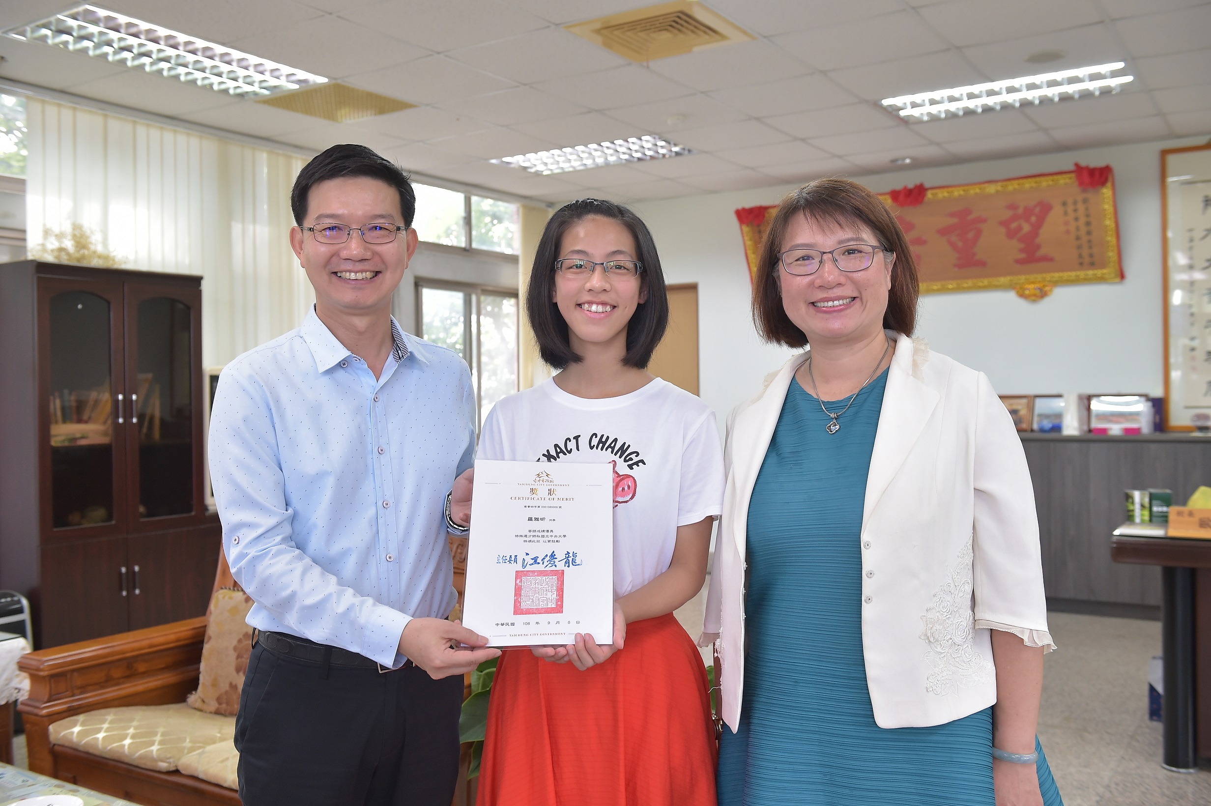 學習母語也能開啟升學大門!台中市立新社高中畢業生羅雅昕,透過特殊選才錄取108學年度國立中央大學。市府客家事務委員會主委江俊龍聞訊後,今(6)日特別前往新社高中,代表市長盧秀燕頒發獎狀及獎學金給羅雅昕,獎勵她對客家母語的優異表現,也鼓勵校內學弟妹以羅雅昕作為榜樣,承續母語傳承使命。