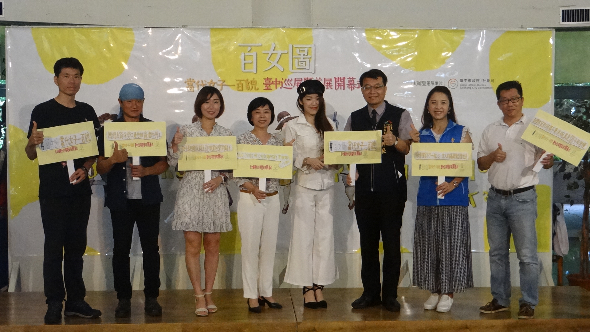 大甲婦女福利服務中心繼2018「粉紅行動~為乳癌女人而畫」之後,今年再推出一系列的全新創作「百女圖-當代女子一百貌」,今日首展由社會局副局長陳仲良代表揭幕,會中也安排玄奘大學教授陳建安、行思策坊董事長陳翠華及獨立策展人瓦歷斯‧拉拜等人,分享對當代女子生活的觀察;現場也邀請「仲花枝玩劇團」演出,以即興方式先由觀眾分享心情故事,演員再用肢體與聲音演繹而出。