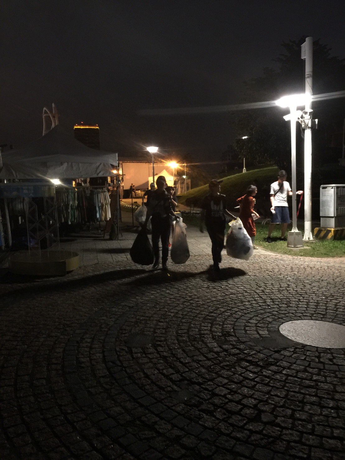 搖滾台中首日活動結束後,志工夥伴維護場地環境情形。
