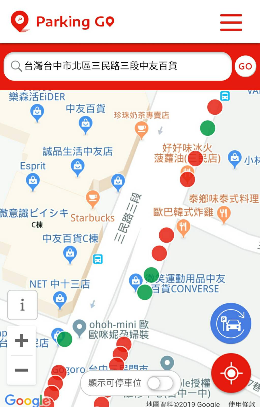 交通局長葉昭甫表示,為便利市民尋找路邊停車位,交通局與遠傳電信合作建置智慧路邊停車系統「Parking GO」,在台中市5,896個差別及累進費率的路邊汽車停車格,免費埋設地磁感應設備,範圍遍及文心路、公益路、東興路、河南路及黎明路等重要幹道,以及一中、勤美綠園道及逢甲商圈等熱門商圈。