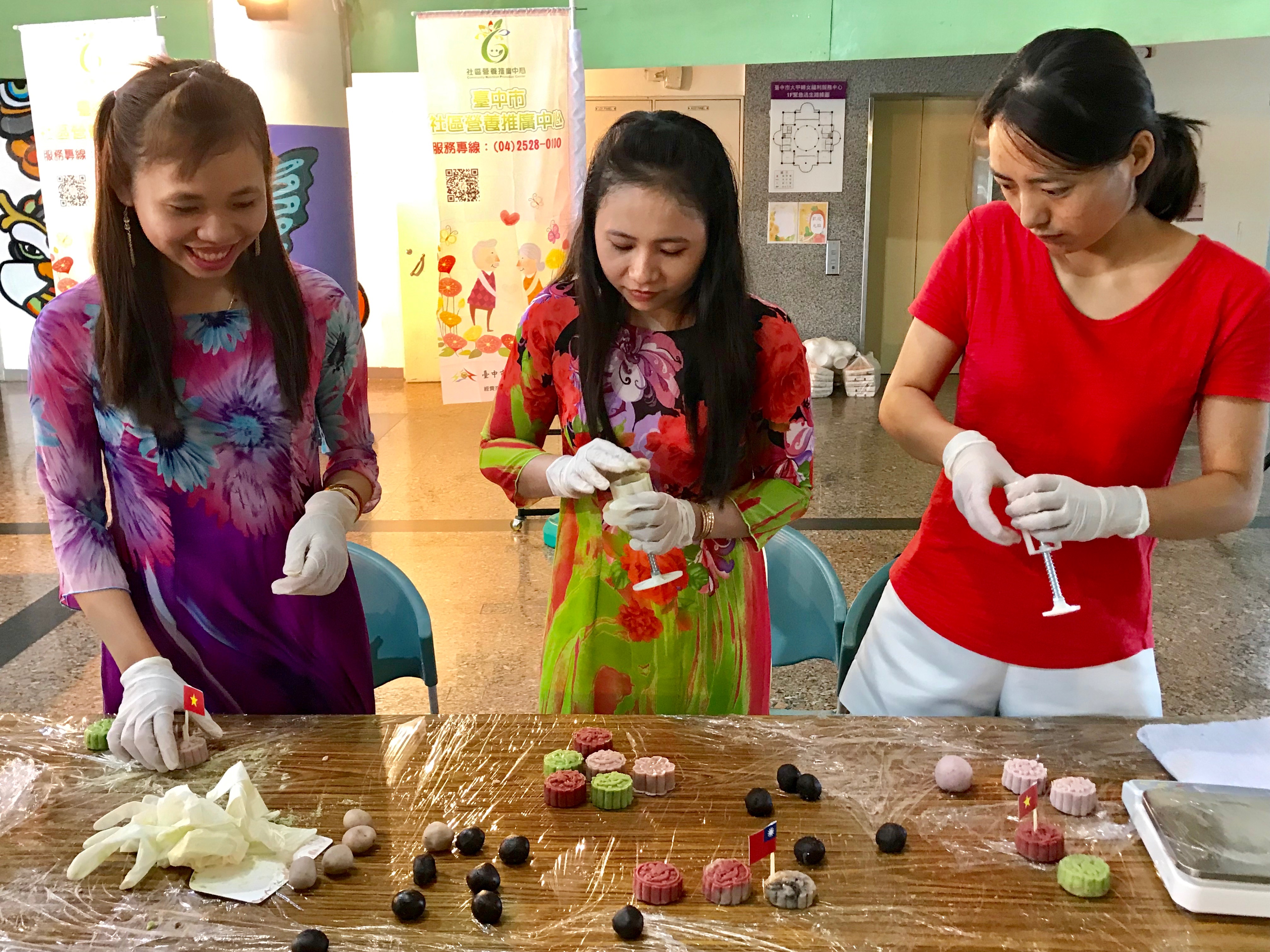 此外,衛生局社區營養推廣中心營養師今(9)日與大甲婦女福利中心、北屯家庭福利中心合作舉辦「手作月餅”新”滋味」活動,邀請新住民朋友一同手作月餅,並使用天然紅麴粉、菠菜粉及紫薯粉做出不同顏色,改善一般月餅較甜、較油及使用色素等問題,吃起來美味又營養。