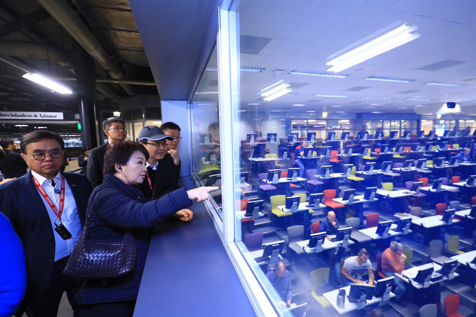 阿斯米爾鮮花拍賣市場(Flower Auction Aalsmeer)是荷蘭最大的鮮花拍賣市場,也是全球最大的鮮花交易市場,世界上有80%花卉產品交易源自於此;先進的高科技與有效率的拍賣方式,是使得荷蘭鮮花交易如此蓬勃的原因。市長盧秀燕9日率隊參訪,盼汲取荷蘭花卉拍賣與交易機制,讓台中市批發市場作業方式朝向全面電腦化、機械化邁進,以減少人力運用,進一步讓所有的拍賣交易制度更快速、更公平、價格更透明。