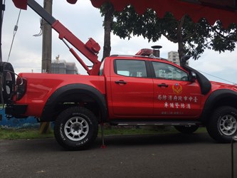 消防局表示,感謝福德宮捐贈器材吊臂車1輛、消防警備車1輛及AED電擊貼片200片,總計375萬元。器材吊臂車為台中市首輛貨卡改裝吊臂車,裝載救援器材,可適用於山谷、懸崖等特殊救助案件,市府將善用此輛車功能,保護民眾生命財產安全。