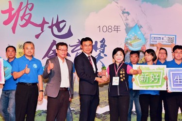全國山坡地保育利用管理績效評比日前出爐,台中首次榮獲六都第一,行政院農委會今(11)日頒發「坡地金育獎」,副市長楊瓊瓔率水利局團隊北上領獎。楊副市長表示,台中推出水土保持計畫申請進度查詢系統、山坡地水土保持管理手冊、中彰投苗聯合水土保持服務團組訓等創新作為,精進管理,簡化程序,獲委員青睞,將持續提供市民更優質服務。