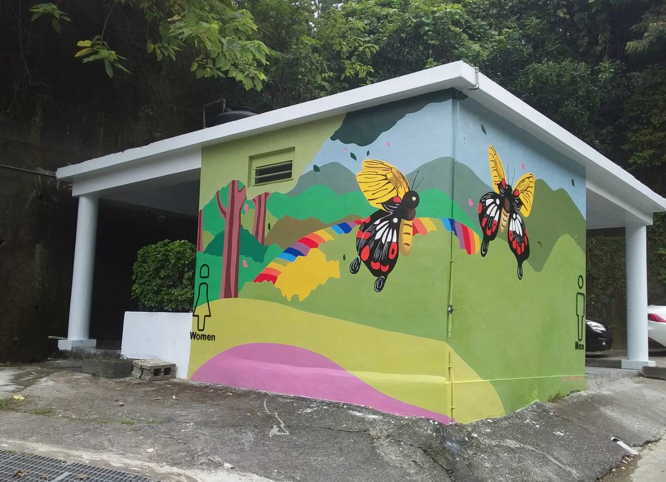 觀光旅遊局今年針對風景區內因年代久遠,設備及外牆老舊的3處6座公廁進行整修,不僅更新公廁內老舊設備,也結合大坑生態特色主題規劃設計,並加強公廁內的照明及通風設備,每間廁所的門板都繪製風景或可愛的動物圖樣,其中,臨近大坑5號登山步道公廁外牆更特別融入地景特色,採當地生態特色的蝴蝶彩繪,也讓大坑的登山環境充滿藝術風情。