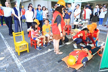 此外,現場也模擬圖書館火災,教導師生正確的滅火過程。盧市長在教育局長楊振昇、客委會主委江俊龍陪同下全程參與,檢驗學校對於災害應變的處理能力,並肯定東勢國小的演練成效,議員冉齡軒也到場關心。