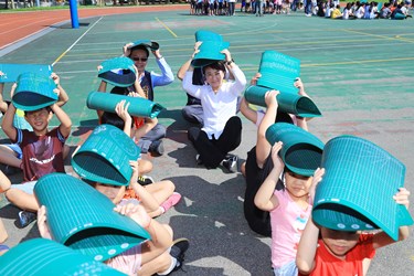 教育局表示,東勢國小師生近千人,屬於中大型學校,短時間內完成疏散避難是項挑戰,因此市府今年特別將東勢國小訂為防災演練觀摩學校。今日演練當警報聲響時,師生立即尋找掩蔽物「趴、掩、穩」,警報解除後至操場集合,清點人數回報。