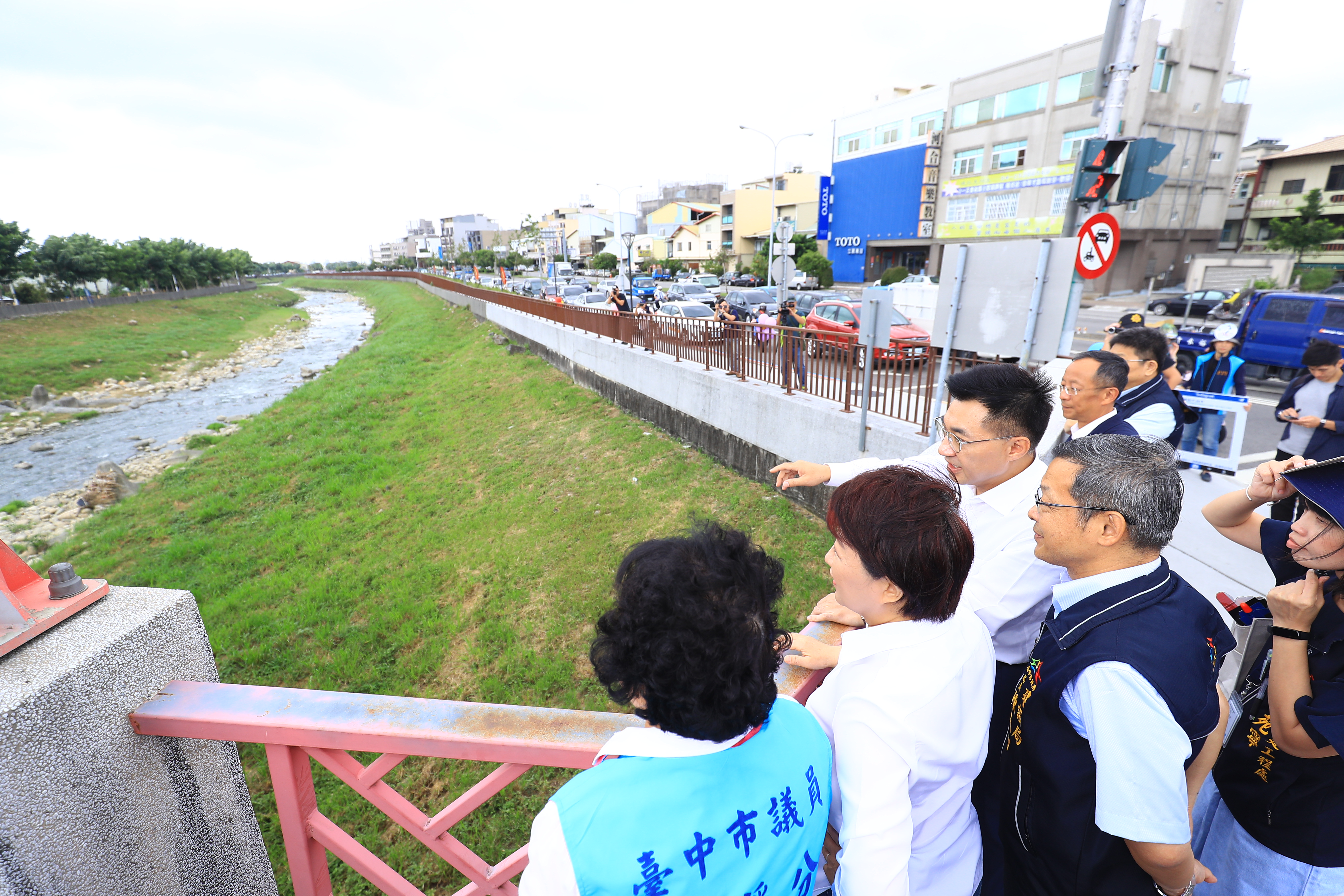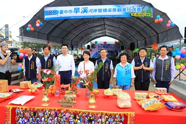 今日視察,盧市長在建設局陳局長陪同下聽取簡報,並視察河岸空間改善成果,她並指示建設局持續針對跨越旱溪的多座橋梁及人行空間加強改善,串聯大台中自行車道路網,包括立委江啟臣、議員張瀞分、豐原區長徐照山及當地里長皆到場關心。