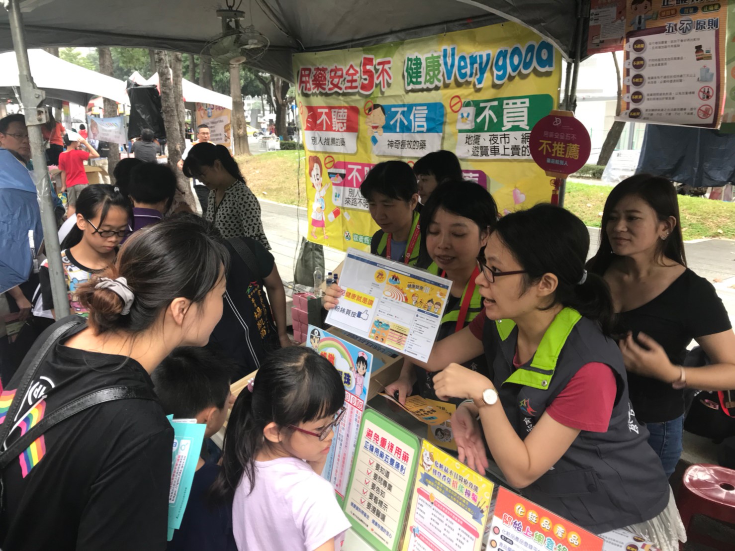 9月25日為「國際藥師節」及「用藥安全日」,為增進民眾正確的用藥知識,台中市食品藥物安全處與衛生福利部食品藥物管理署、中華民國藥師公會全國聯合會、各縣市衛生局及藥師公會今(21)日在草悟道舉辦「用藥安全路 藥師來照護」園遊會,寓教於樂讓大小朋友充分瞭解「不聽信、不信、不買、不推薦、不吃」正確用藥五不原則,現場吸引近千位民眾熱情參與。