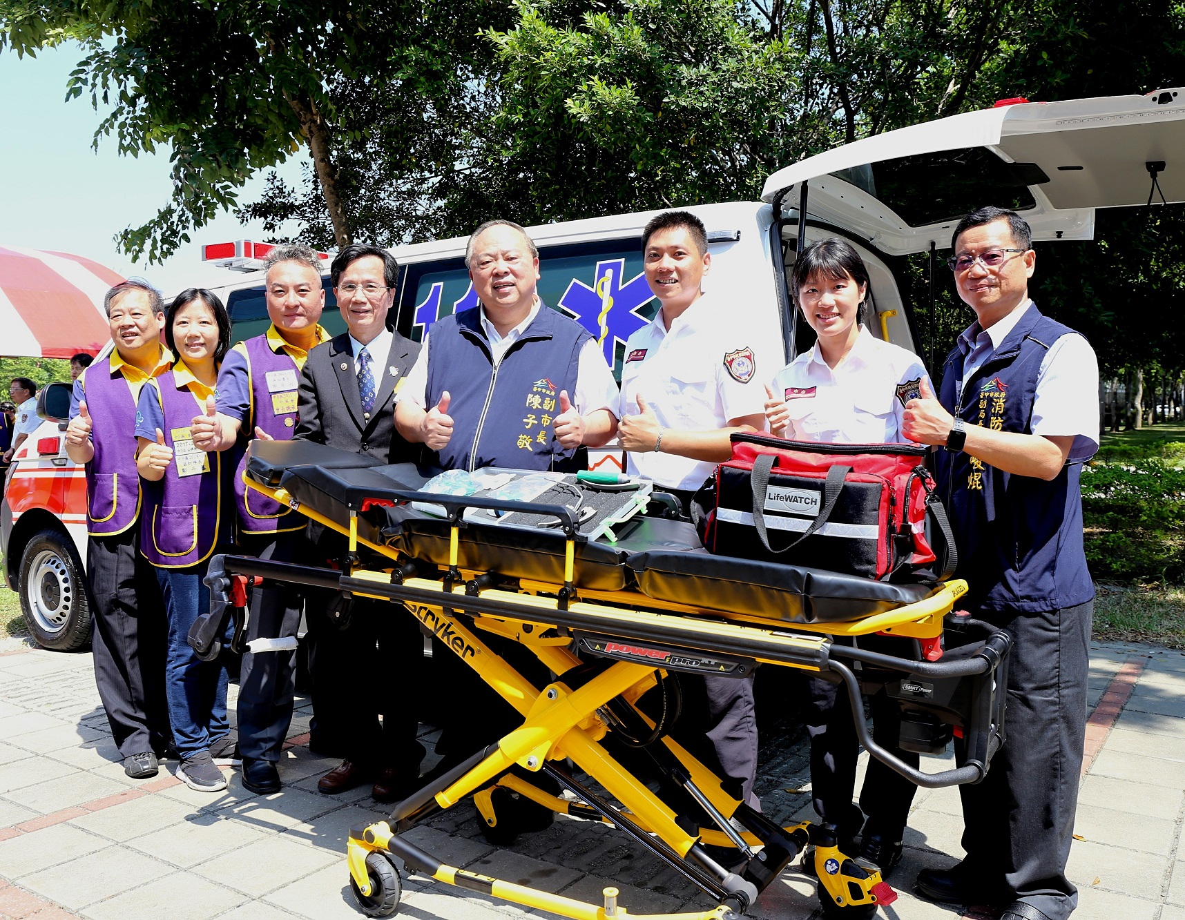 陳副市長指出,去年救護車出勤次數高達127千多次,今年上半年也累計62千多次,可見救護需求龐大。去年成功救回73名到院前心肺功能停止(ROSC)者,期許這次捐贈讓救護品質更上一層樓。