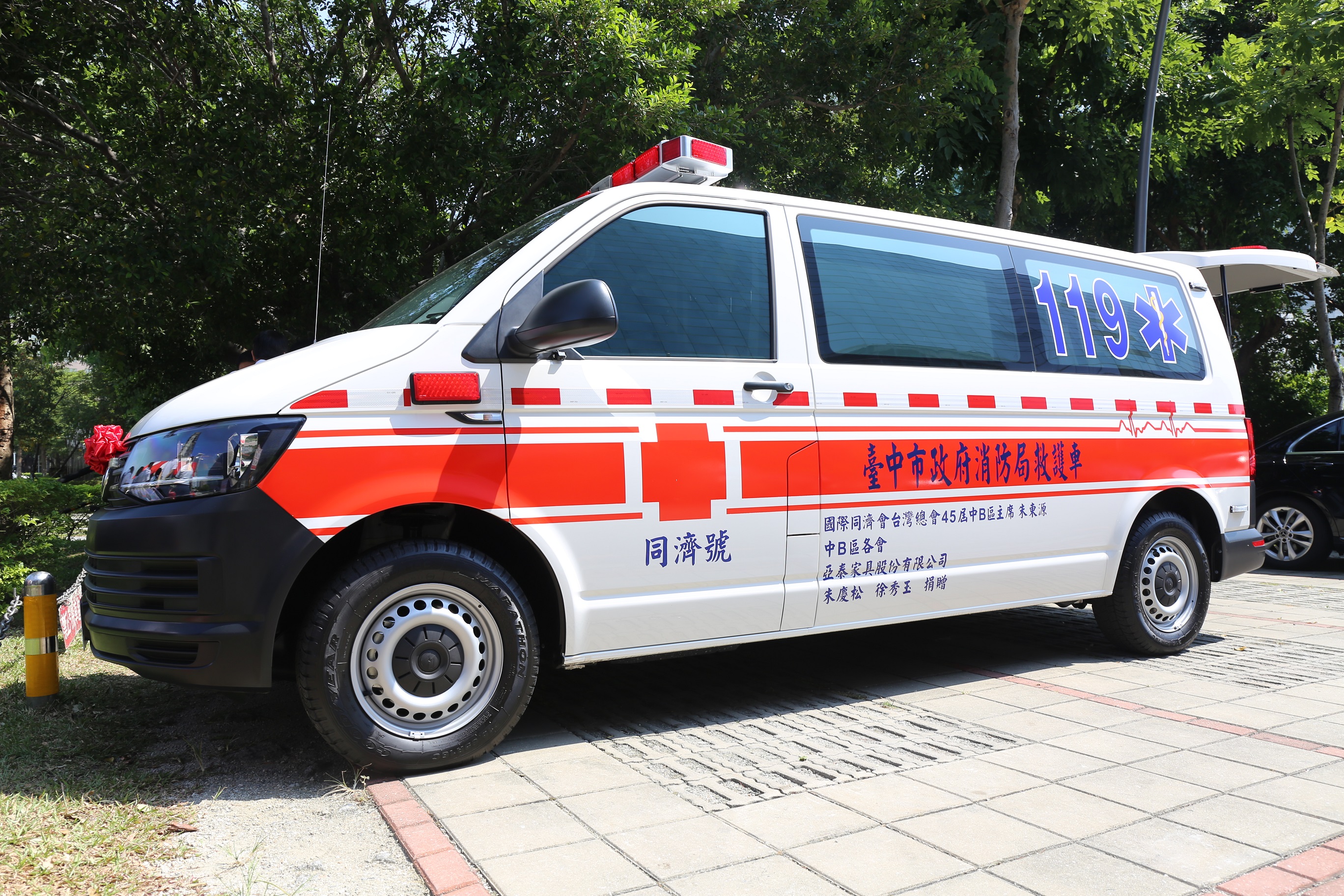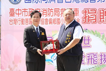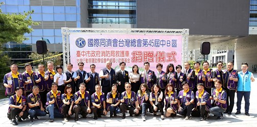 國際同際會台灣總會中B區捐贈價值300萬元的救護車及救護急救器材裝備予台中市政府消防局,副市長陳子敬今(25)日出席捐贈儀式時表示,他身為警察出身,早期警消合一,也管理過消防業務,了解消防工作辛苦危險,除人才訓練外,救護器材也很重要,感謝各界人士捐贈消防車及裝備、消防水車、雲梯車等,提高工作效率,也保護市民安全。