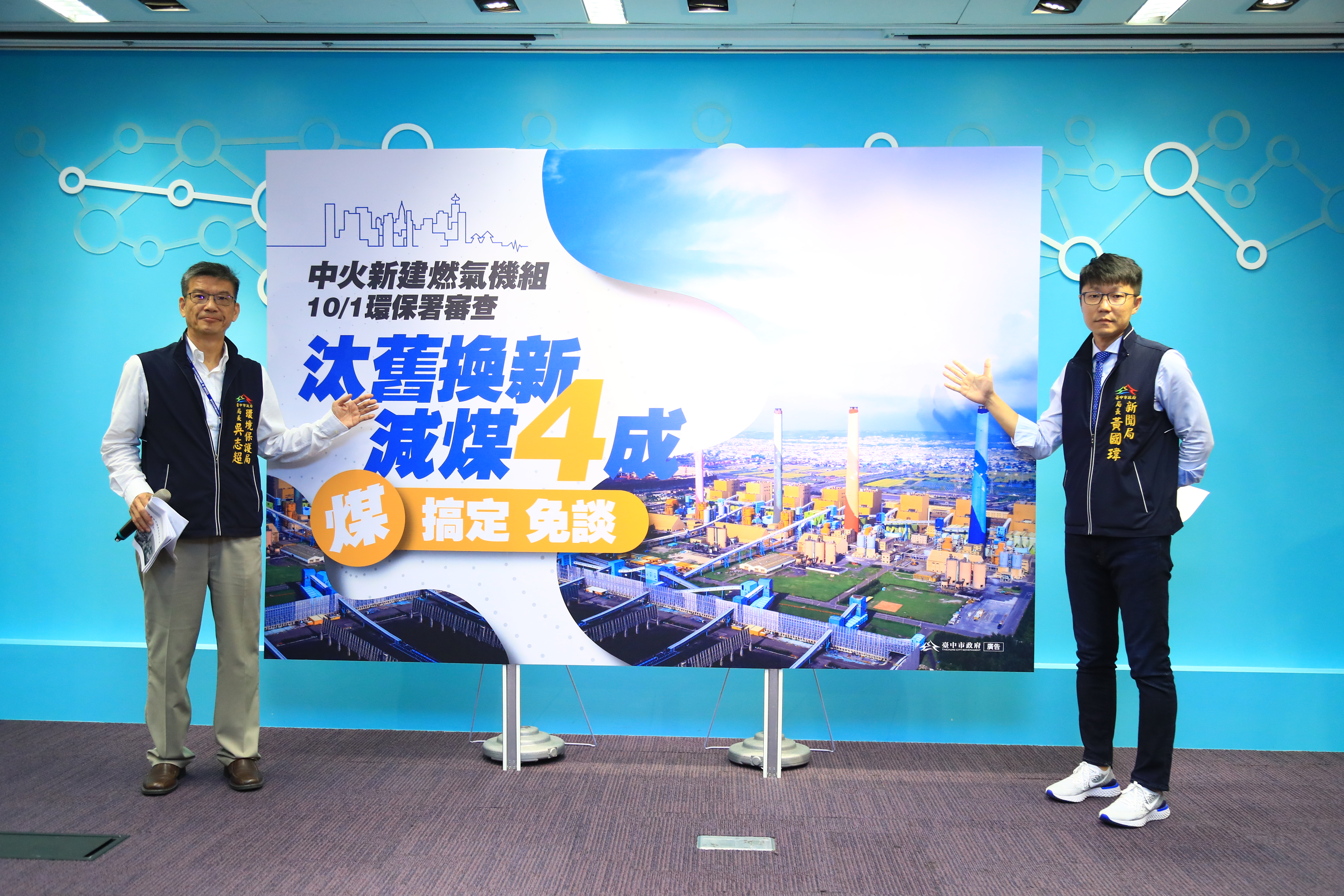 「中台灣不需要一個汙染巨獸!」新聞局長黃國瑋表示,中火是台中空汙最嚴重的固定汙染源,目前尚未實現減煤4成,也未完成燃煤機組汰舊換新,不肯承諾除役老舊燃煤機組,竟又規劃新增2部燃氣機組,市府表達強烈不滿,台中人絕不會接受,也呼籲不分黨派站在一起,向中火堅定說NO,除非中火做到「減煤4成、汰舊換新」兩大原則,市府絕不妥協。