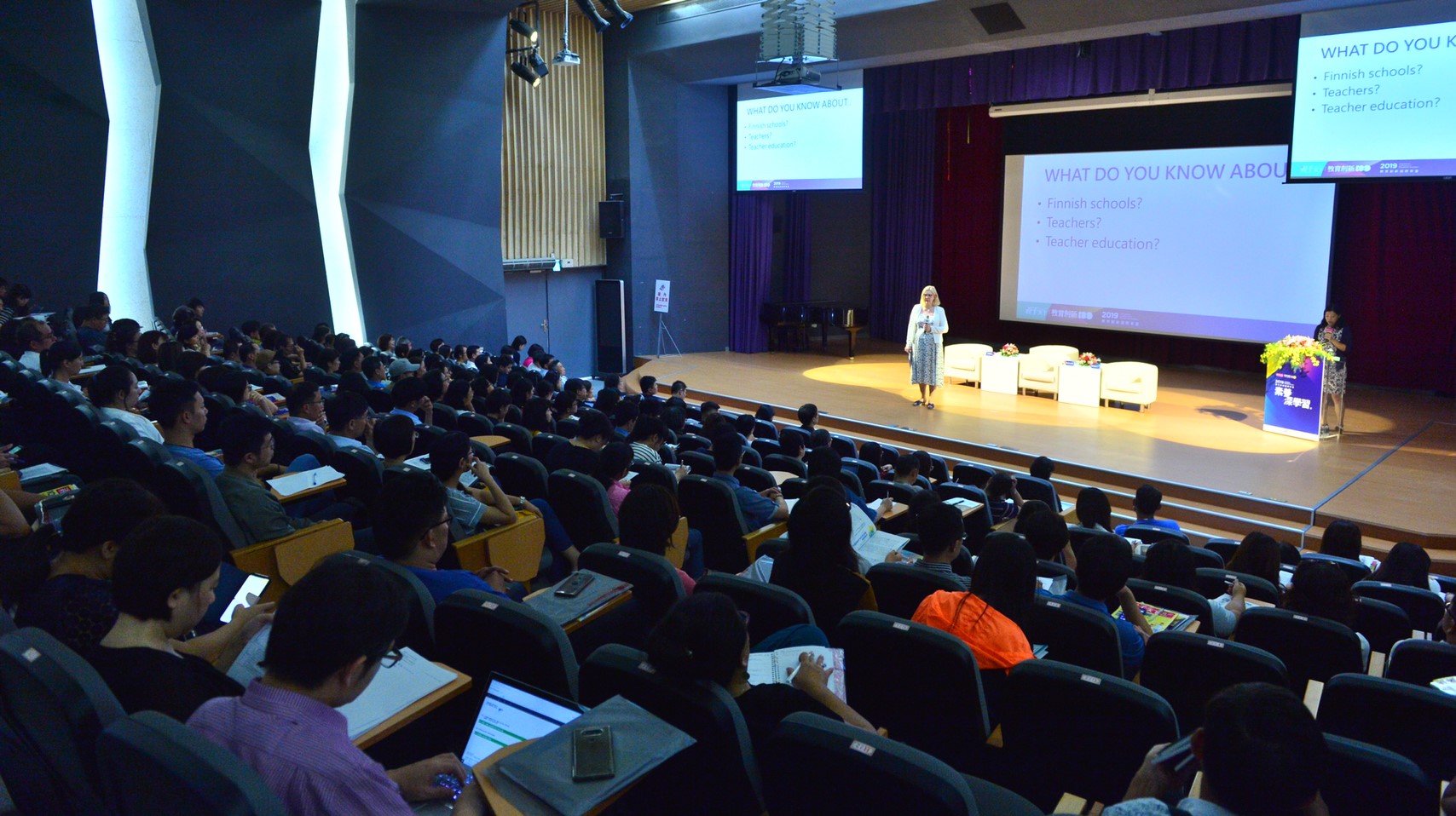 由市府教育局、大墩國中與親子天下合作舉辦的「2019教育創新國際年會」,安排芬蘭赫爾辛基大學教育心理學教授克絲蒂・隆卡(Kirsti Lonka)演說,她是赫爾辛基大學教師學院創始成員、教育科學院首屆院長,也是全球知名主題演講者。