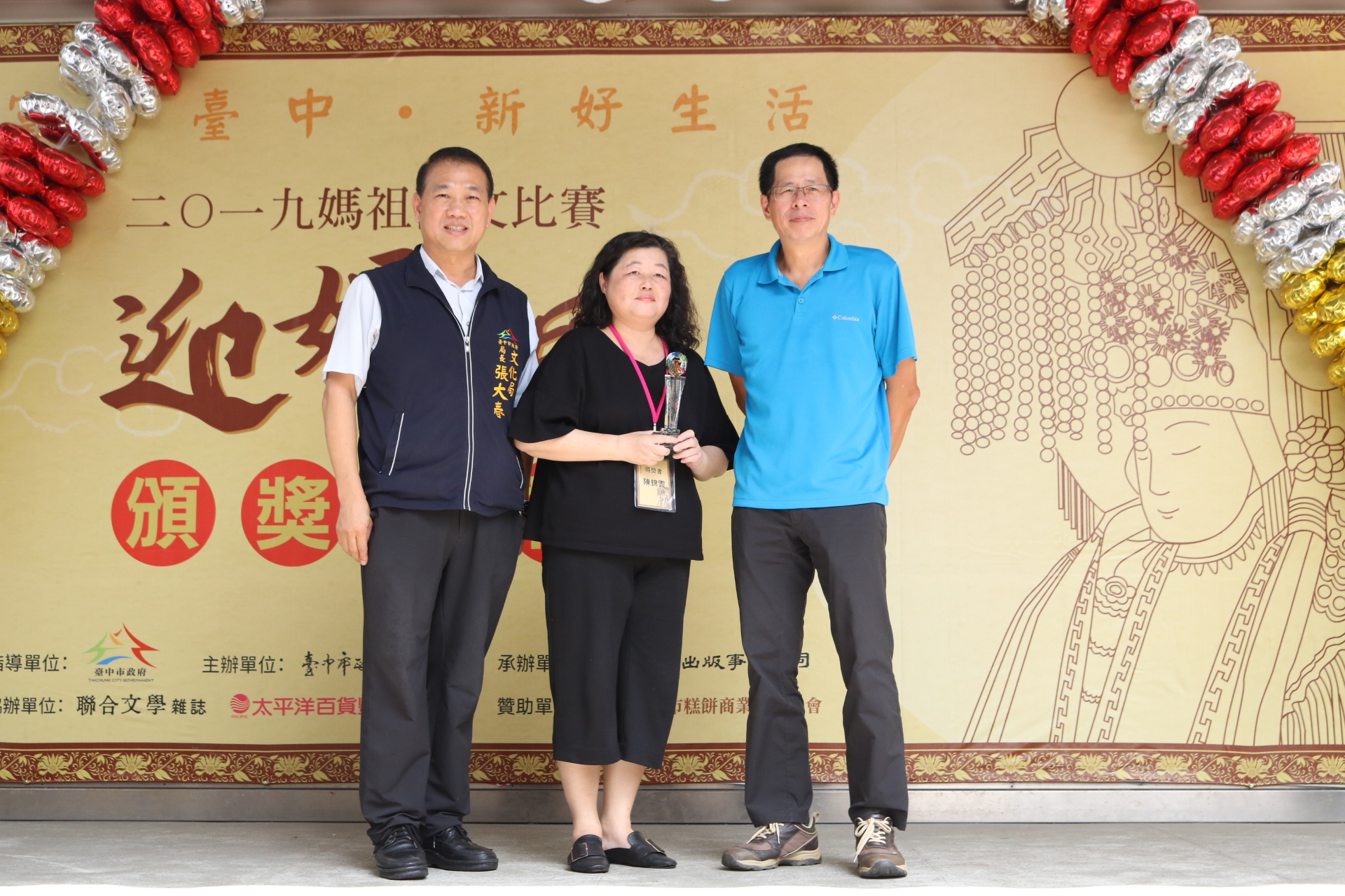全台唯一以媽祖信仰文化為主題的「2019媽祖徵文比賽」,吸引了501件踴躍投稿,歷經初審及決審作業,共有24位好手脫穎而出,其中,更有來自瑞典的得獎者,今(28)日在豐原太平洋百貨廣場舉行頒獎典禮。文化局長張大春表示,今年市府特別與台中市糕餅商業同業公會合作,於徵文作品集書衣背面設計了台中糕餅地圖與優惠券,希望透過文學書寫與糕餅文化的結合,能讓書香、餅香滿溢台中。