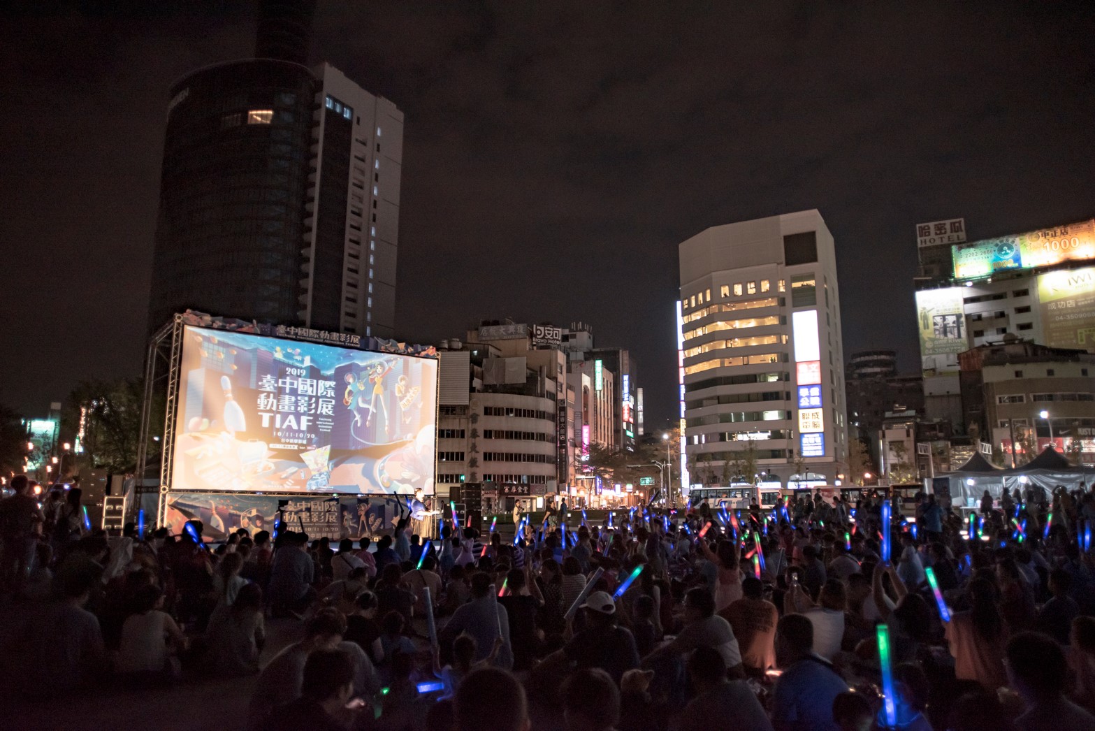 2019台中國際動畫影展10月11日至20日將在台中凱擘影城展開,昨(28)晚主辦單位市府新聞局在台中火車站前廣場舉辦「《冰雪奇緣》歌舞互動大聲唱」,為影展暖身,播放榮獲奧斯卡最佳動畫及最佳電影歌曲的《冰雪奇緣》,吸引許多小朋友裝扮成主角艾莎到場觀影,知名藝人巴鈺及哈孝遠也打扮成《冰雪奇緣》角色現身,邀請大家10月到台中看動畫。
