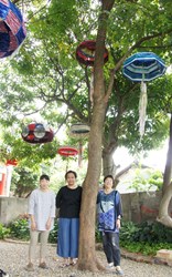文化局表示,「2019編織共創–起飛的記憶」由織布玩創意工作室的陳如萍、吳品慧及楊雅玲老師共同策展,以共創出發,透過在地眷戶近20人,費時2個多月時間,共同編織發想完成。作品包括7條各達12-13公尺的編織共創作品「風的記憶」;16支運用回收雨傘既有傘骨纏繞鉤製成的降落傘作品「起飛」;以零碼布拼接7個眷村地圖地毯,加上屋內上方作品「開支散葉」組成「眷村聚落」。