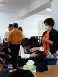盧市長接獲訊息後,立即調整行程趕抵火災現場,了解處理情形,她強忍悲痛、紅著雙眼一一向現場辛苦的消防弟兄們握手、鞠躬,表達最高敬意。