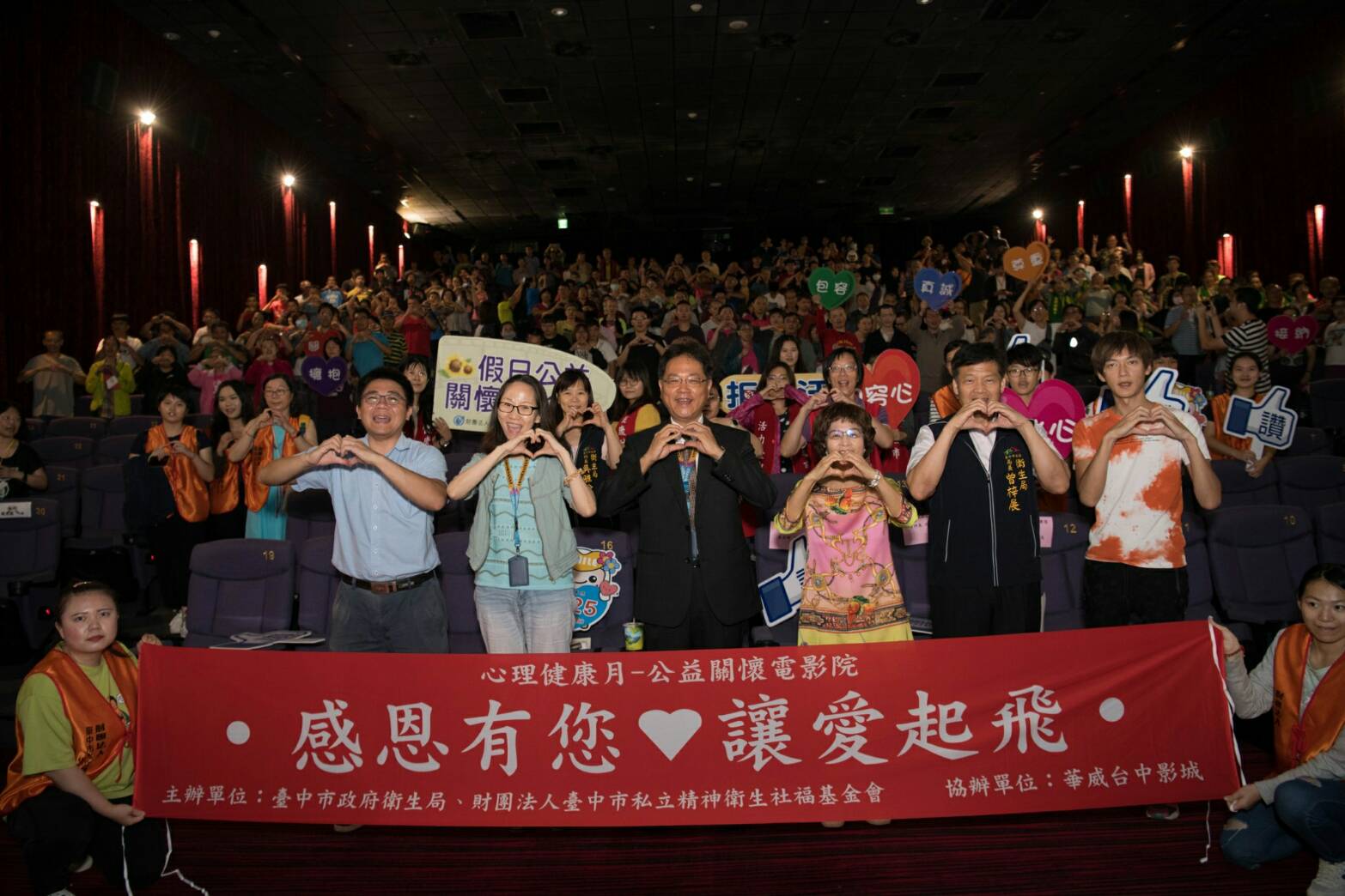 10月是心理健康月,台中市政府衛生局與台中市私立精神衛生社福基金會於今(5)日在華威台中影城舉辦「感恩有您,讓愛起飛」公益關懷電影活動,邀請300多位康復天使及其家屬欣賞「全面攻佔3天使救援」,電影描述護衛總統的特勤員多年來工作身心俱疲,在家人勸導下才正視疾病,邁向新生活,期望藉由電影鼓舞病友及家屬,也透過活動拉近病友及照護者距離。