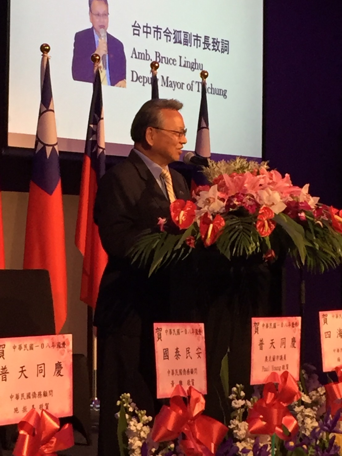 令狐副市長昨(5)日出席奧克蘭僑界晚宴,會中除奧克蘭唯一亞裔市議員Paul Young外,華夏協會理事長林泓圳、紐西蘭台灣商會會長陳琮崴等多位僑界領袖均出席,與超過200位僑胞一同用餐。
