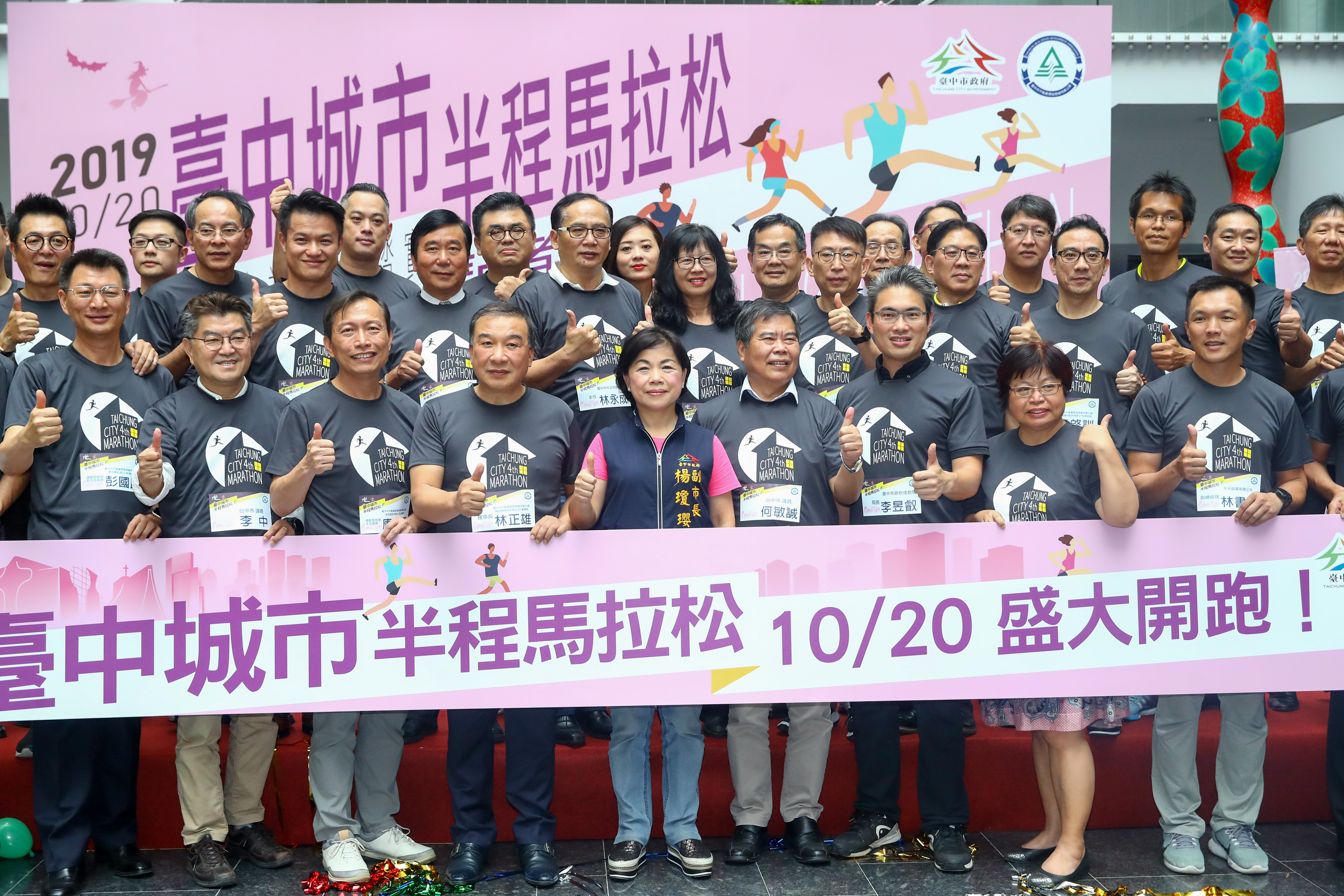 「2019第四屆台中城市半程馬拉松」由市府運動局及台中市不動產開發商業同業公會共同主辦,今(8)日在市政大樓舉辦宣傳記者會,台中市副市長楊瓊瓔也到場預祝選手們成功達陣。