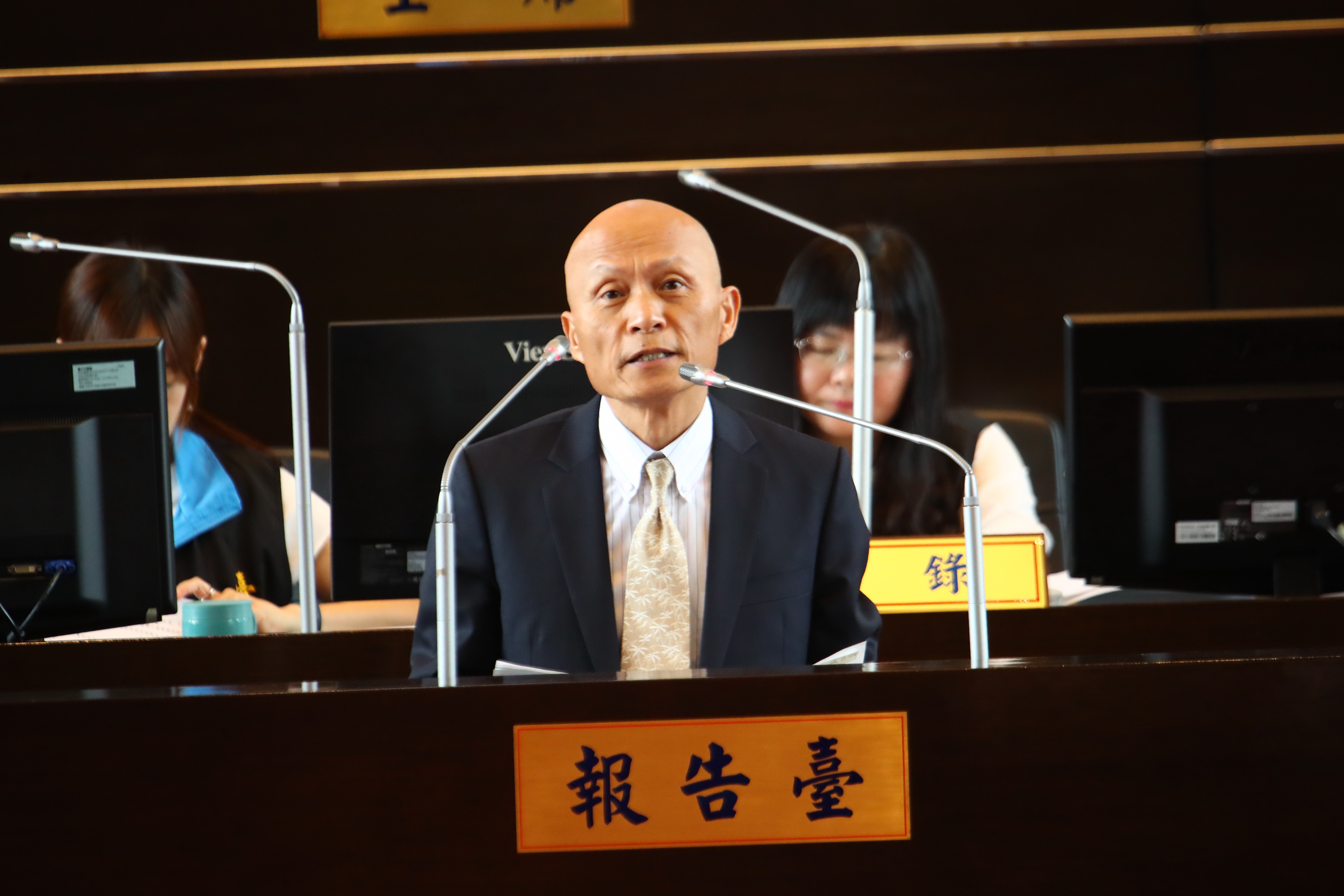市議會今日進行第3屆第2次定期會第1次會議,財政局長羅仙法、主計處長蔣建中分別就歲入預算編列情形、預算編製內容說明,今年市府致力推動幼兒教育補助、社會住宅繼續推動、老人健保補助等政策,經費編列以教育科學文化與社會福利支出占最大宗。