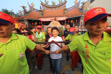 南屯萬和宮「媽祖鎮殿335週年南屯區遶境祈福活動」起駕典禮今(10)日展開,市長盧秀燕出席恭請請媽祖上轎,並與萬和宮董事長蕭清杰一起扶媽祖神轎起駕出發,進行為期兩天、行程合計25公里的遶境祈福活動。