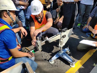 人手孔蓋是道路常見的一部分,也是交通隱形殺手。為此,台中市政府建設局日前於車流多且位於市區中心的朝富路,辦理孔蓋防滑觀摩會,作為孔蓋抗滑試辦地點,邀集各管線單位、工程設計與施工單位,以及中興大學教授黃建維、高苑科大教授林登峰共同探討孔蓋抗滑課題,盼找出成本與安全平衡的最佳檢測維護模式,提供各孔蓋維護機關參考。