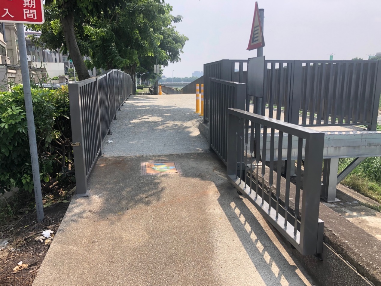 交通局表示,目前正改建水景玫瑰公園對面平台鋪面,預計於今年11月底完工,後續將定期巡查檢修,完善自行車道騎乘環境。(10/12*14)*交通局