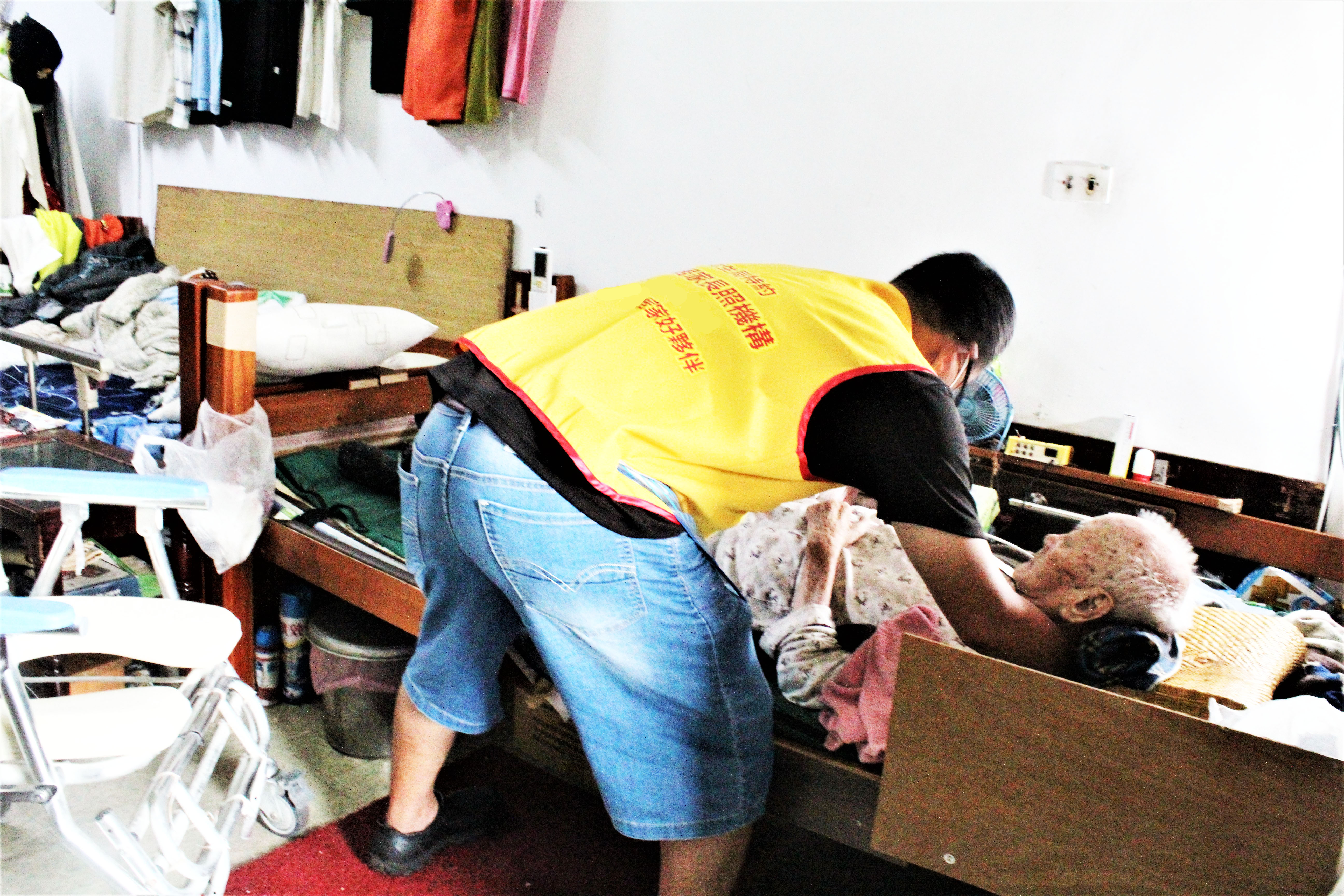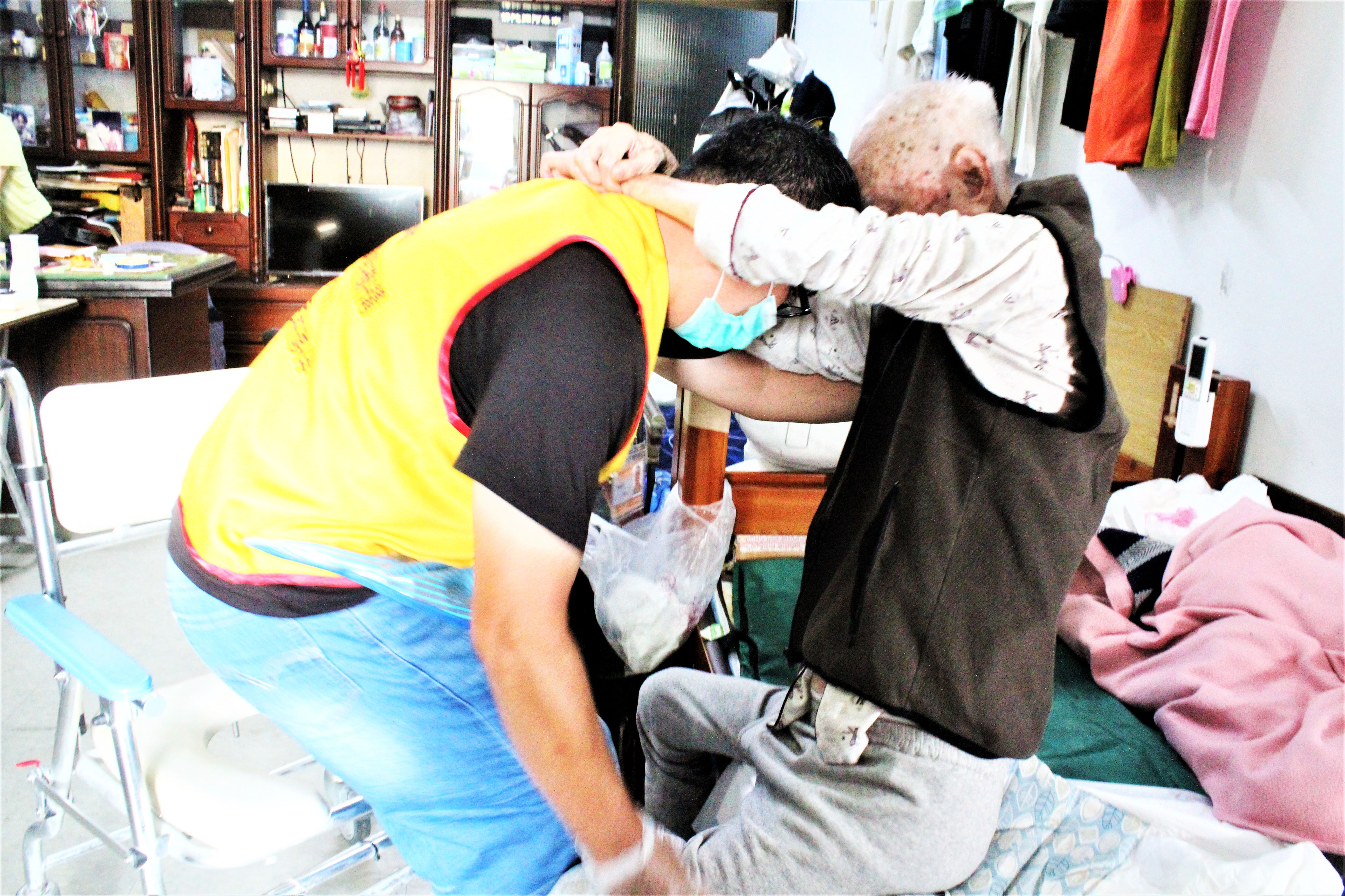 居家服務人員每週到陳阿公家裡,從床上將阿公移至便盆椅,並推到浴室沐浴,身體清潔後,還會為阿公按摩關節,也會用輪椅將阿公推至戶外散步;除身體照顧外,居家服務人員也會協助烹煮晚餐,陳阿公滿足地表示「餐餐好吃!」。居家照顧服務除讓陳阿公生活更有品質,也紓解兒子照顧壓力,減輕家中負擔。