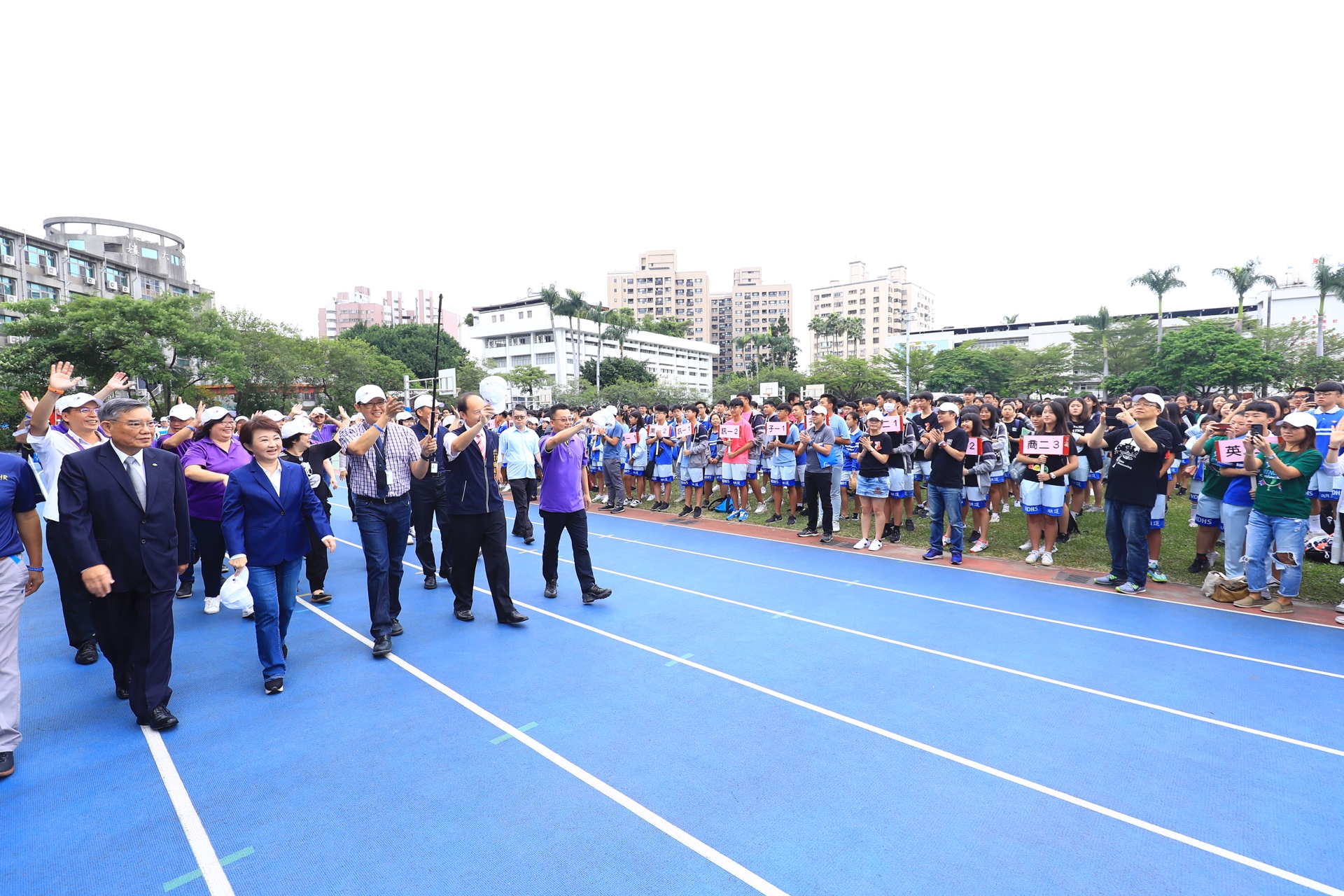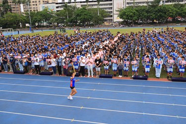 這次明道中學50周年校慶運動會的聖火,是由副市長楊瓊瓔及教育局長楊振昇點燃,象徵點燃教育的聖火,再由校長率領的聖火鐵騎隊,從市政府一路傳遞至明道中學,再由全國U18女子田徑400公尺紀錄保持人許嘉恩同學接手,燃出人文與科技的燦爛光芒。