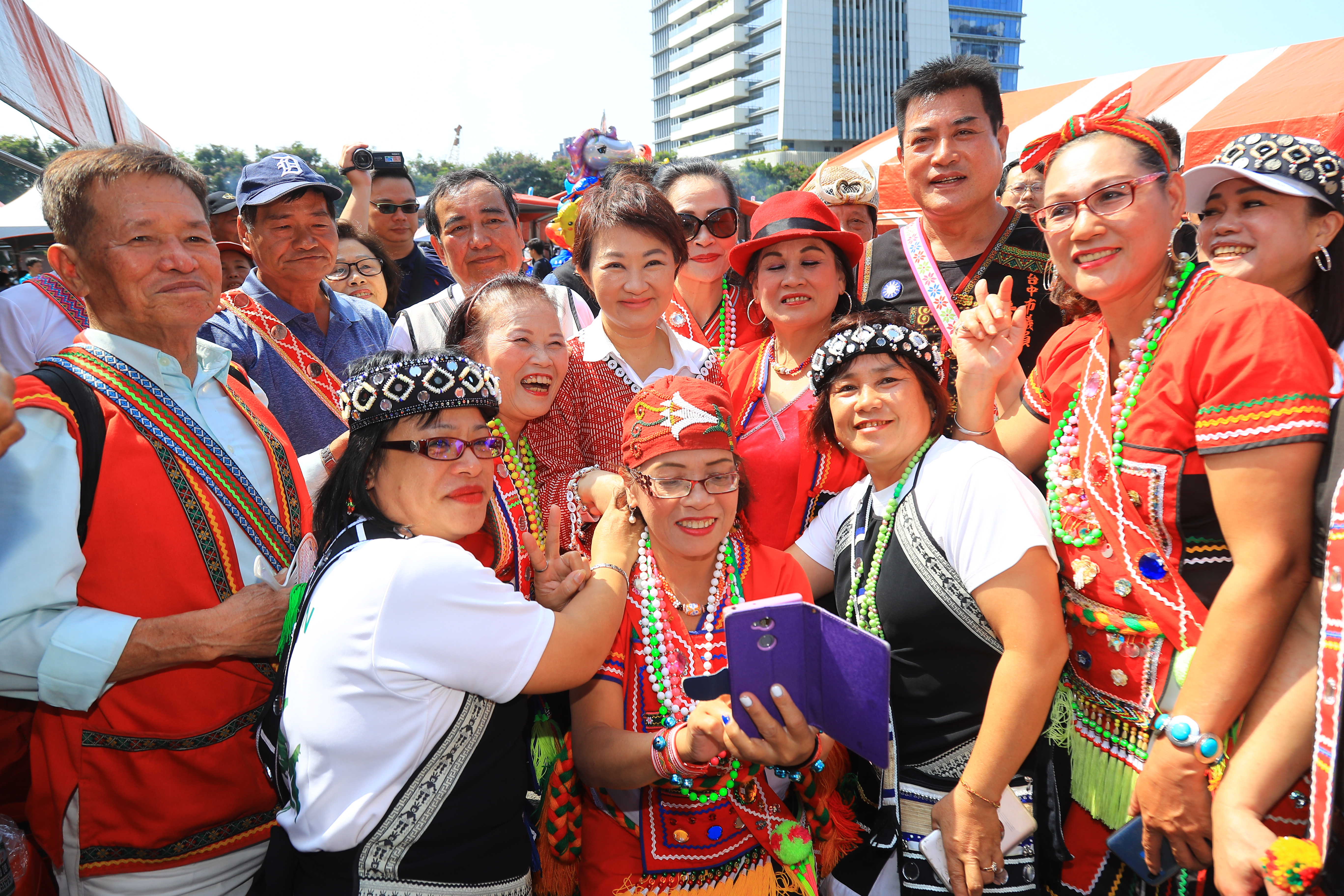 台中市擁有官方認定16個原住民族,市府原住民族事務委員會今(19)日於台中農田水利會廣場舉辦「台中市原住民傳統文化節」,市長盧秀燕穿著賽德克族傳統服飾出席,以4族語言向在場民眾問候,一一走訪特色攤位,展現十足親和力;為求公平,她也承諾未來她將年年穿不同族的服裝出席,祈禱年年平安、年年豐收。