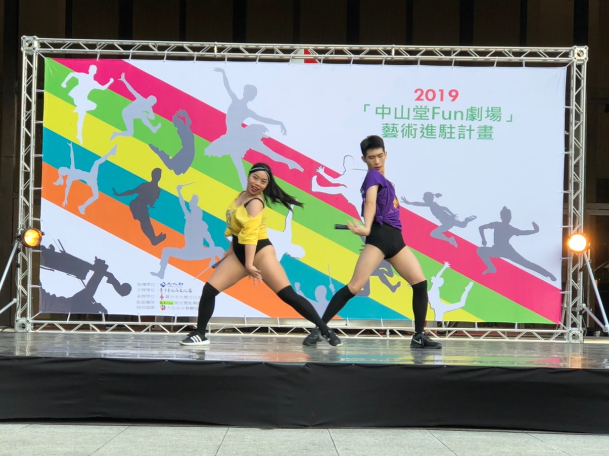 此外,文化局今天也在中山堂戶外廣場舉辦「2019中山堂Fun劇場-藝術進駐計畫」成果展演,由「極至體能舞蹈團」演出全新編創新作「舞堂課2」,還有台中科技大學G.O.D.熱舞社、逢甲大學熱舞社以及台灣體育運動大學舞蹈系帶來的舞蹈演出;現場更邀請到嶺東科技大學流行設計系帶來服裝秀展、東海大學音樂系打擊樂團帶來精彩演奏,跨域結合各類型表演藝術,展現台中新創藝文活力。(10/19*13)*文化局