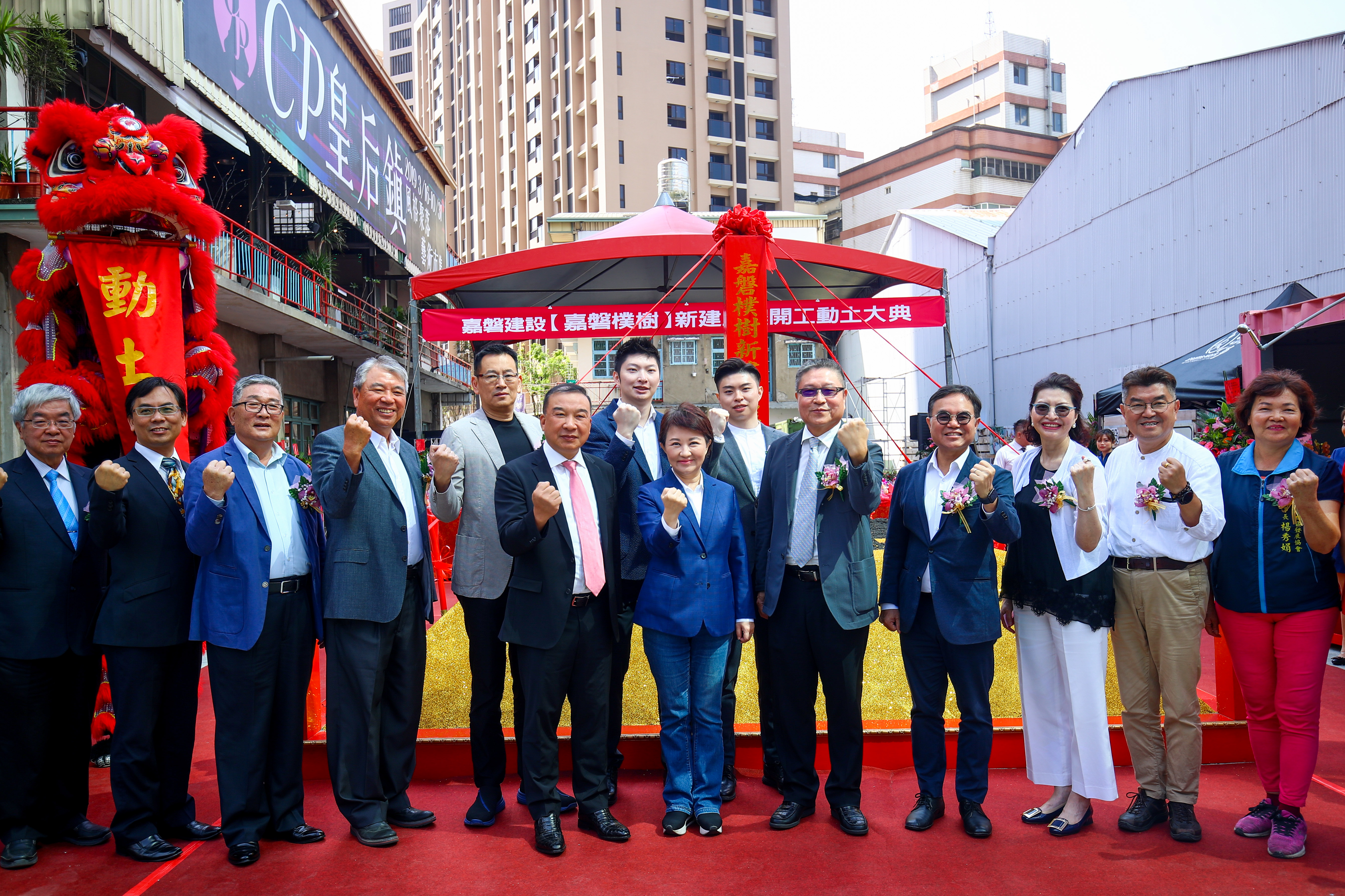 今日該建案新建工程開工典禮,包括市長盧秀燕、都發局長黃文彬、台中市不動產開發公會理事長林正雄,以及議員李中、羅廷瑋等人皆到場觀禮。