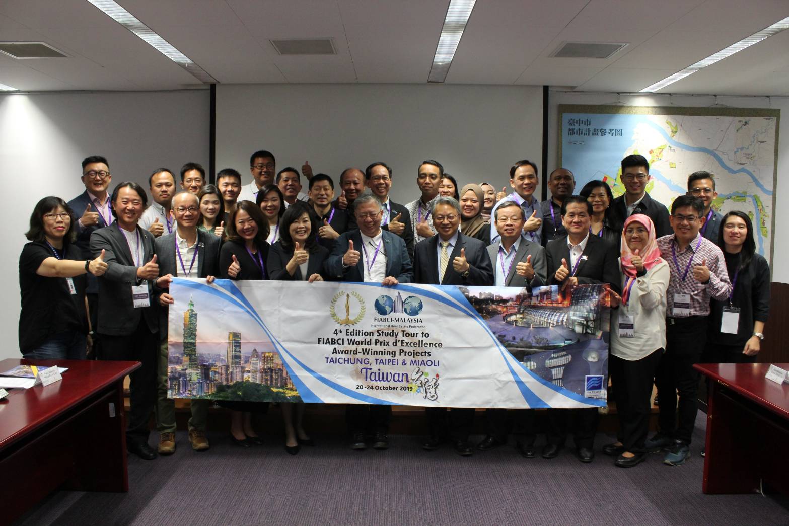 世界不動產聯合會馬來西亞分會(FIABCI MALAYSIA) 31人來台進行「全球卓越建設獎」踩線之旅,今(22)日拜會台中市政府,由副市長令狐榮達代表接見,分會主席倪川鵬對台中擁有多項全球卓越建設獎作品表示肯定,尤其對秋紅谷景觀生態公園規劃設計更是讚嘆,整座城市襯托於自然及人文環境之下展現各式不同風貌,也可看出發展潛力無限。