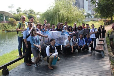 經濟發展局指出,昨日由市府與台灣餘弦建築師事務所建築師楊家凱共同接待,導覽2014年公部門基礎建設暨環境適意工程類首獎作品「秋紅谷景觀生態公園」,以專業角度詳細解說規劃緣起、建築工法及特色,參訪團反應相當熱絡,多位團員更對園區維護大為肯定,從落成至今仍保持綠意盎然、環境清幽,更可見魚群、烏龜遨遊於城市鬧區裡的池塘。