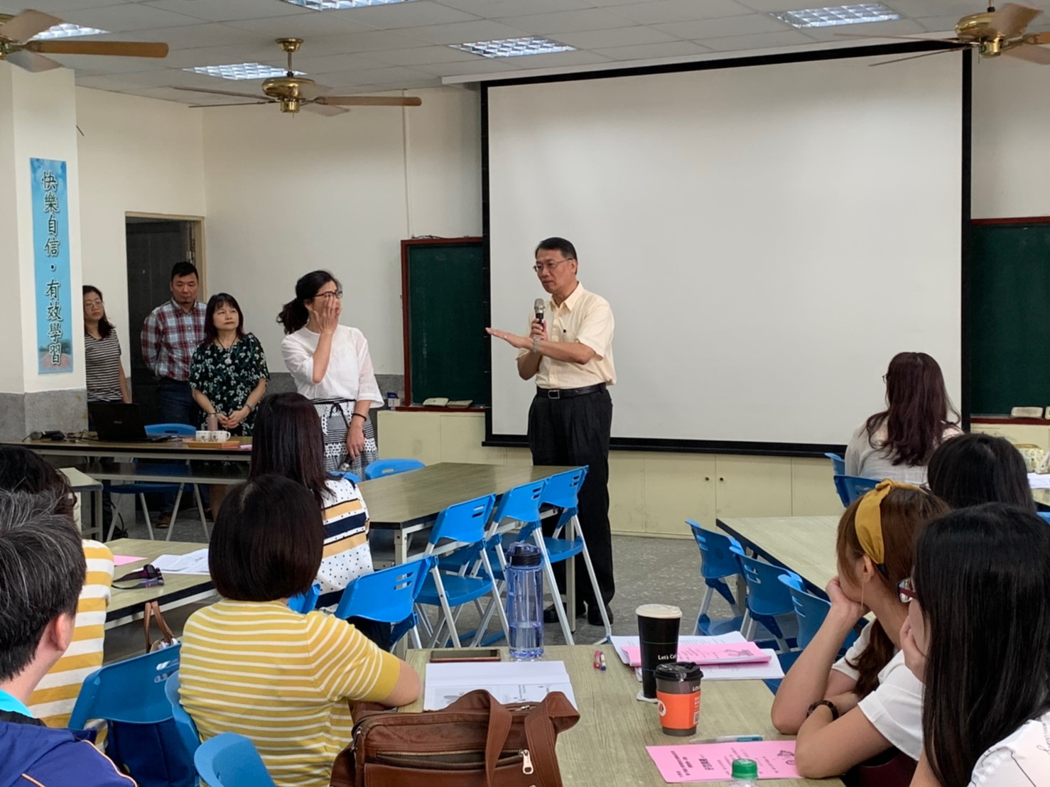 教育局副局長方炳坤今日也前往研習會場鼓勵參與教師,他表示,8月舉辦3天英語教師專業進修增能研習,參與教師收穫良多,認為確實提升教學技巧,也期盼教師透過研習為台中市英語教育帶來正能量。